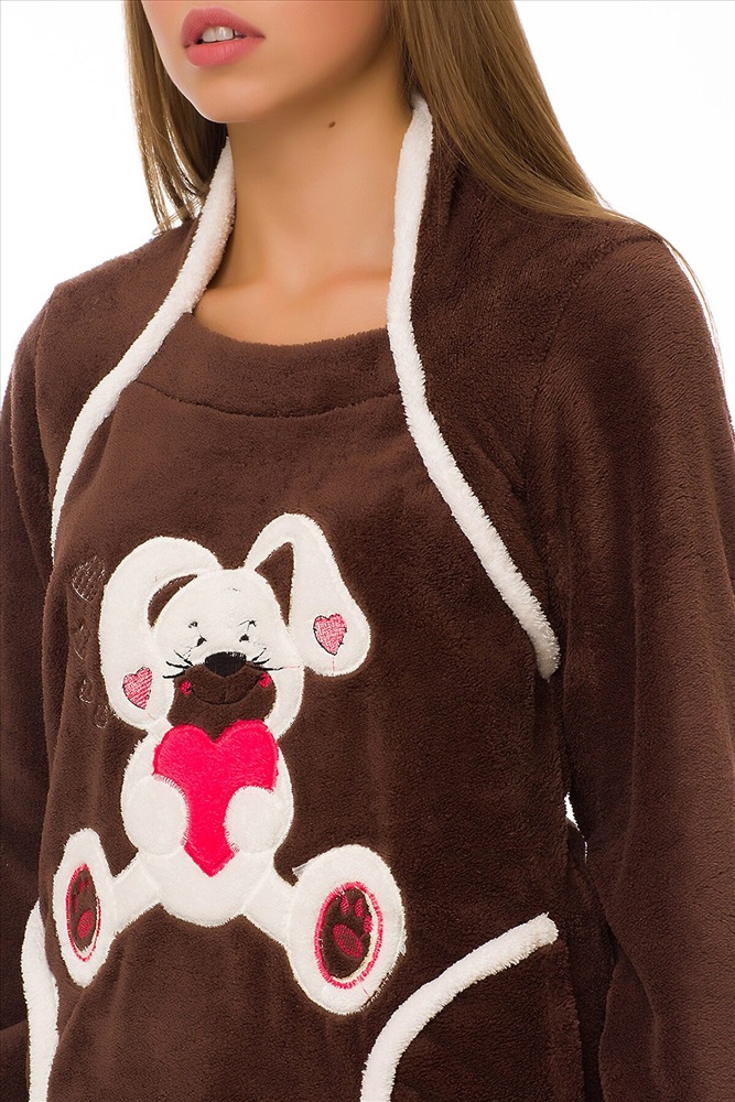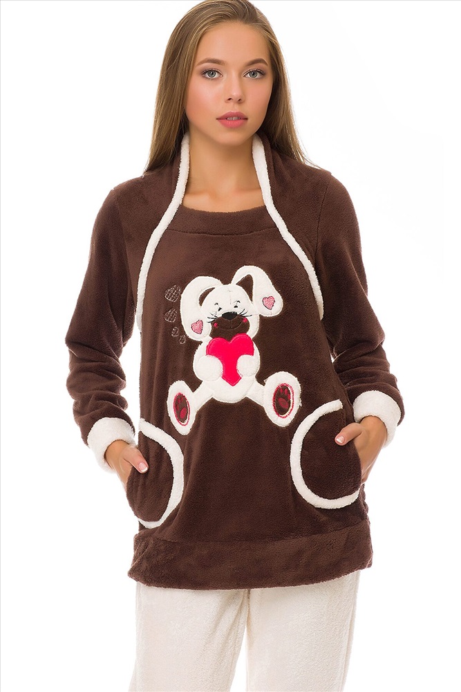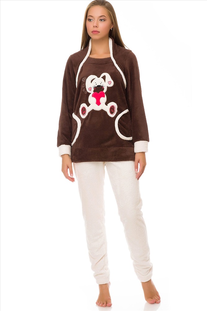 ID товара: 67920 Состав: Полиэстер 100% Сезон: Демисезон Длина: Средняя, Толстовка 75 см. по спинке, брюки 80 см. по внутреннему шву Фасон: Прямой Рукав: Длинный, 55 см. Страна бренда: Турция Страна производства: Турция Теплый и уютный махровый костюм, выполненный из невероятно нежного и мягкого материала. Костюм состоит из толстовки с накладными карманами по бокам и брюк зауженного кроя, с поясом на резинке. Незаменимая вещь для домашнего гардероба. Комментарии к товару