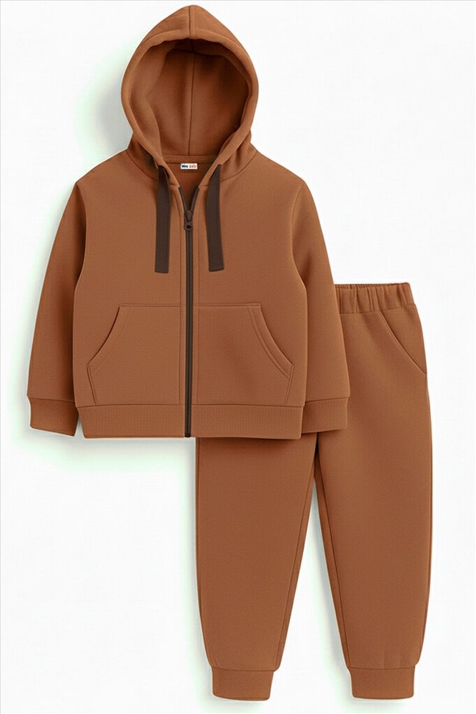 Детский спортивный комплект, состоящий их толстовки на молнии и брюк.