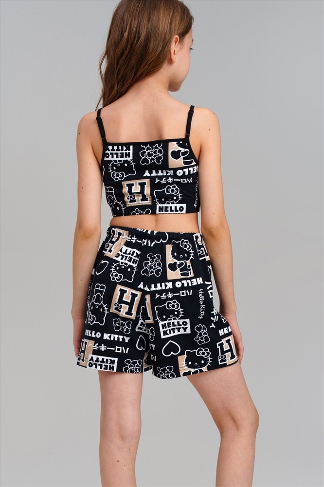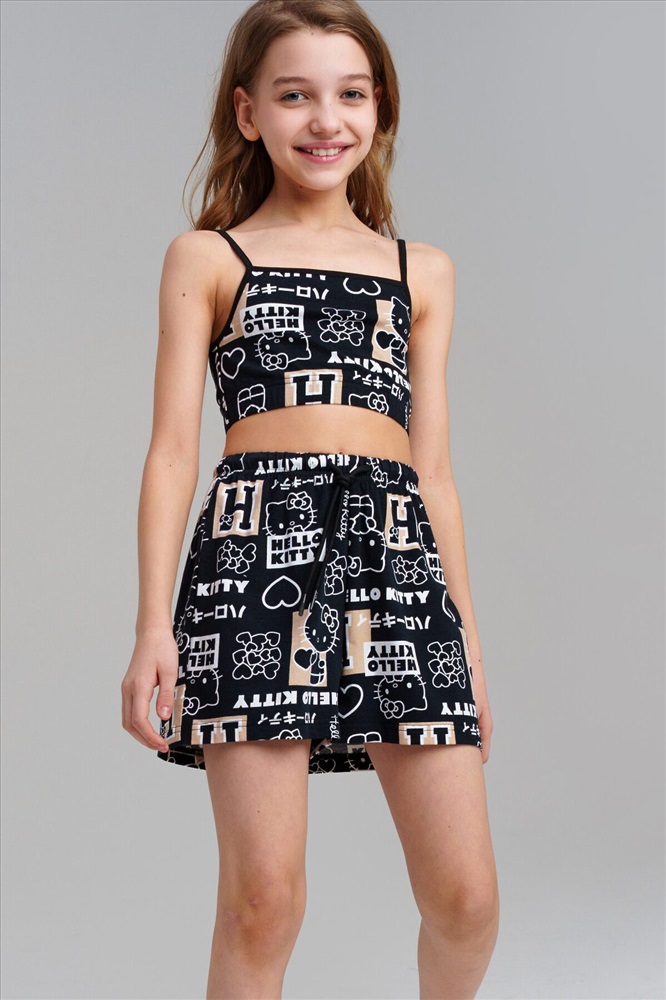 Костюм для девочки подростка. Топ, шорты из эластичного и приятного на ощупь трикотажа джерси. Шорты на резинке со шнурком. Функциональные боковые карманы. Высокое содержание хлопка 95%. Благодаря наличию эластана в составе ткани изделие держит форму и меньше мнется. Модель выполнена из качественного и приятного на ощупь трикотажа.