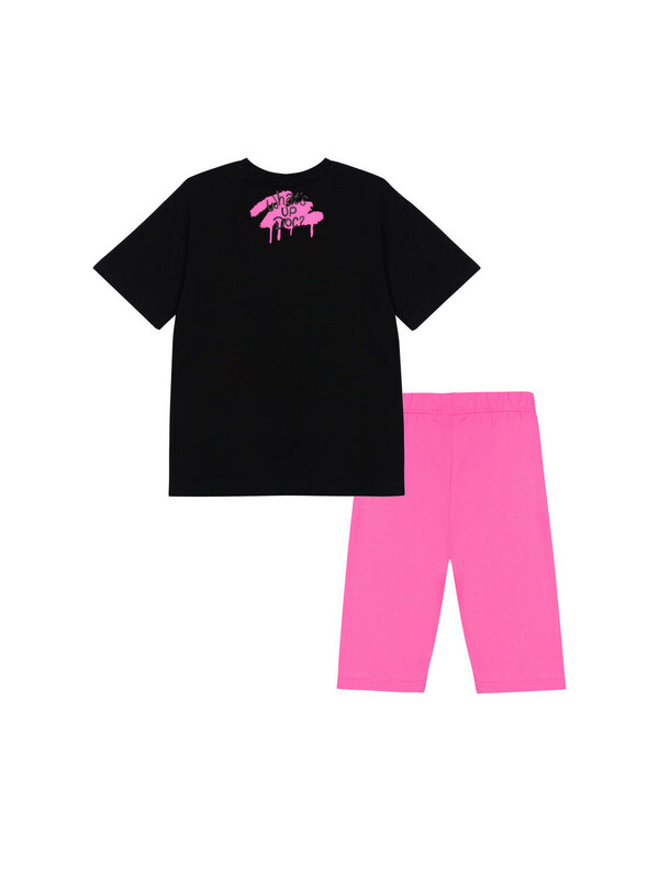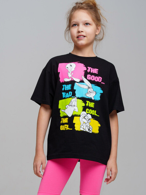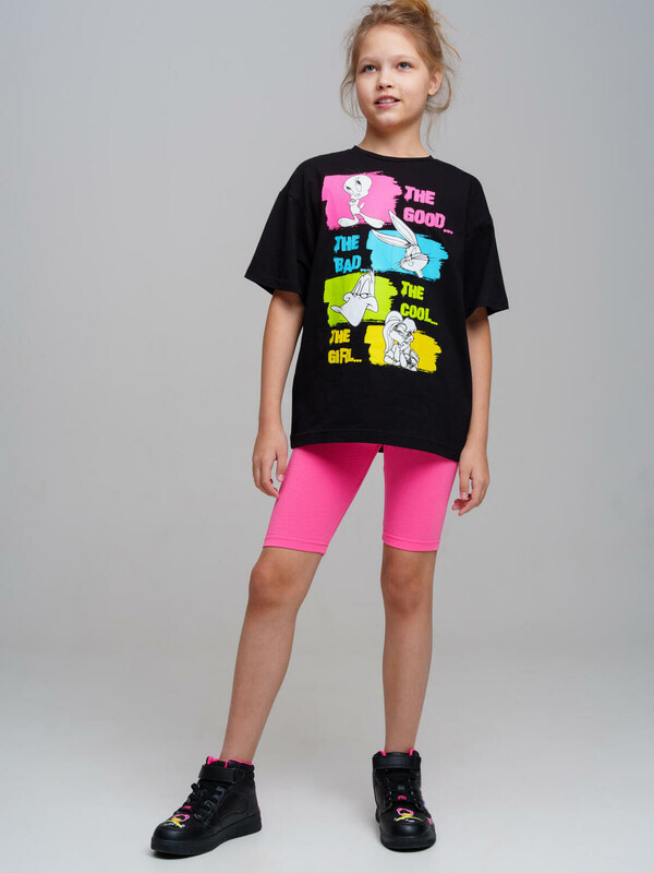 Костюм для девочки подростка. Футболка оверсайз, укороченные леггинсы из эластичного и приятного на ощупь трикотажа джерси. Леггинсы на резинке. Высокое содержание хлопка. Модель выполнена из качественного и приятного на ощупь трикотажа.