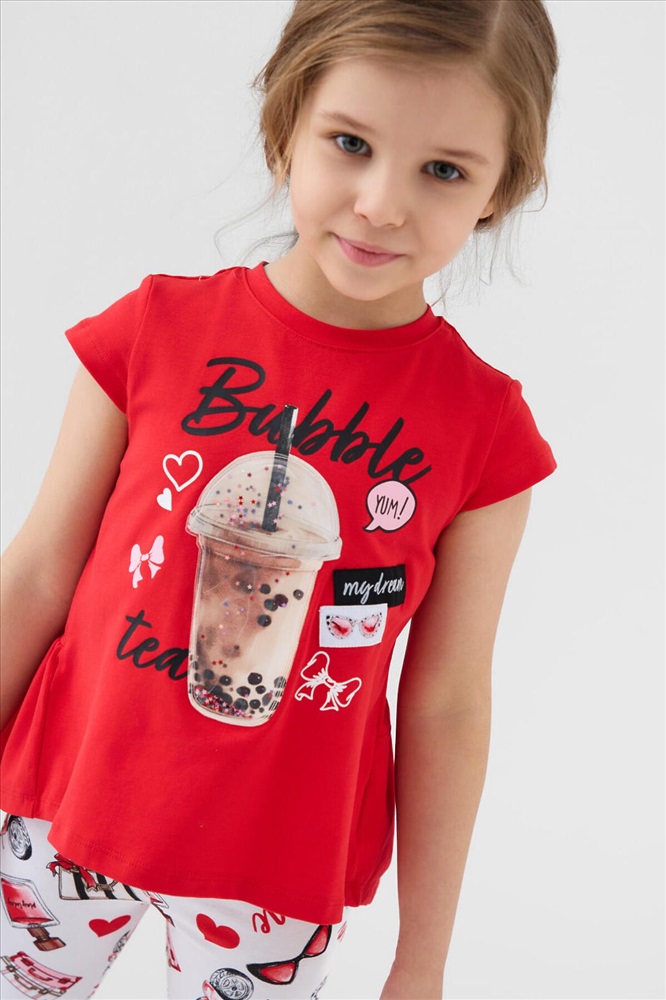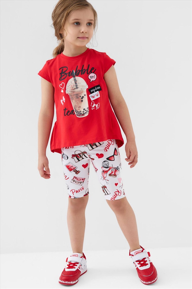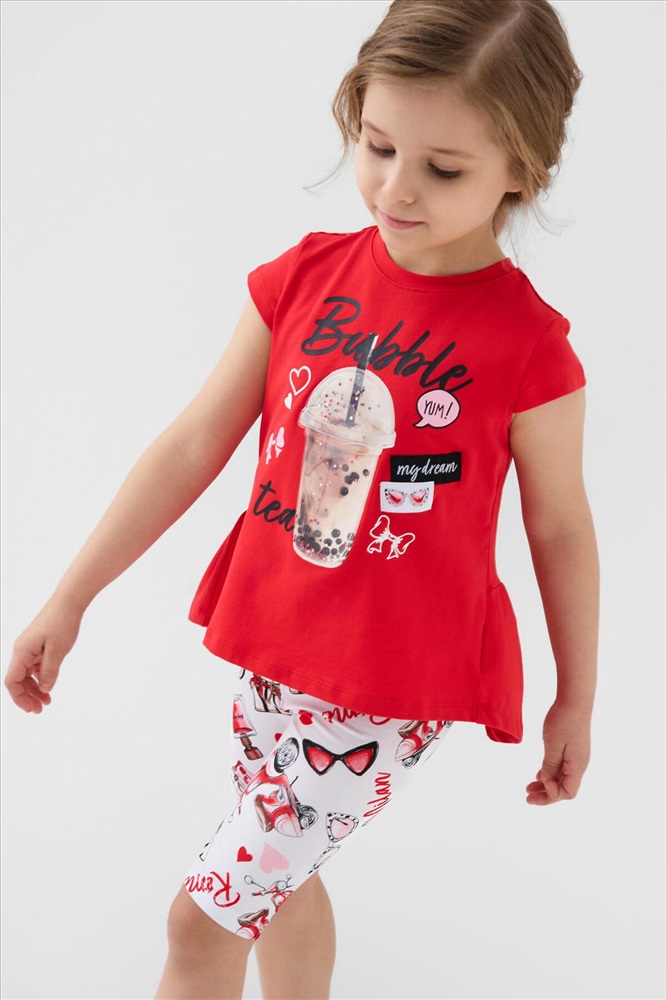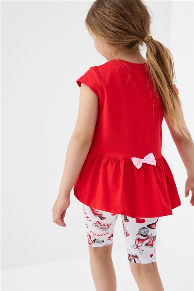 ID товара: 1243947 Состав: 95% хлопок, 5% эластан Сезон: Весна/Лето Детский комплект для девочки. Состоит из футболки прямого кроя, с короткими рукавами и укороченных легинсов. Футболка слегка удлиненная, с аккуратной сборкой внизу. На передней части размещен яркий декоративный принт, что делает модель выразительной и привлекательной. Легинсы облегающего силуэта, комфортно сидят по фигуре и хорошо тянутся. Пояс мягкий, на резинке, не сдавливает и подходит для активного движения. Комментарии к товару