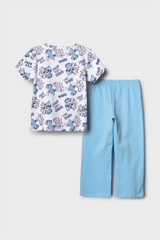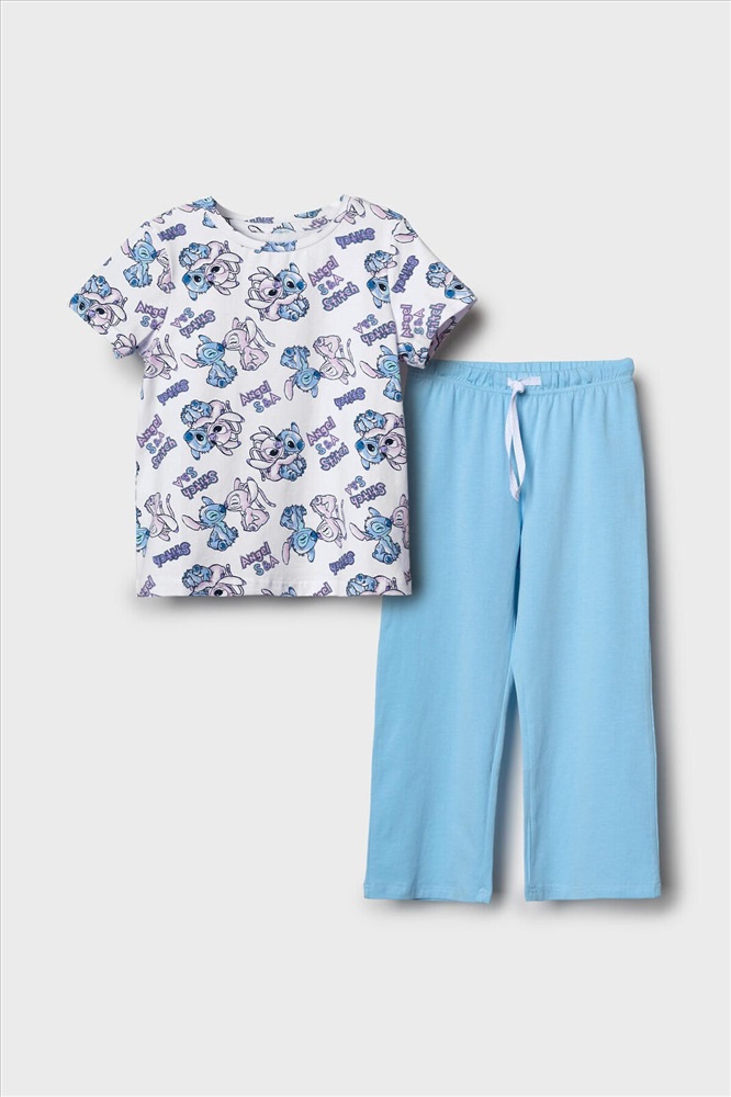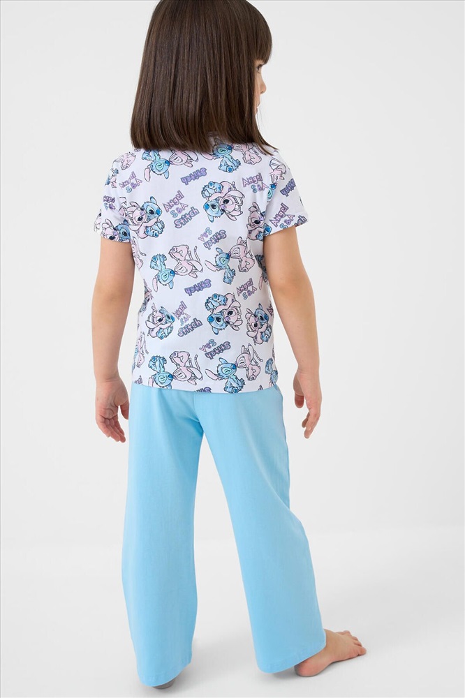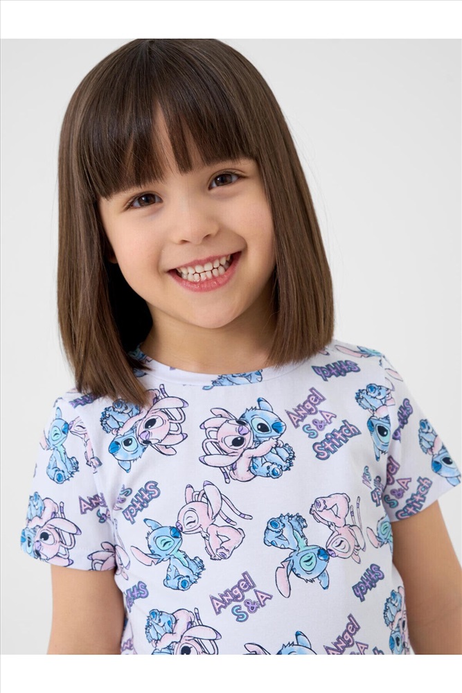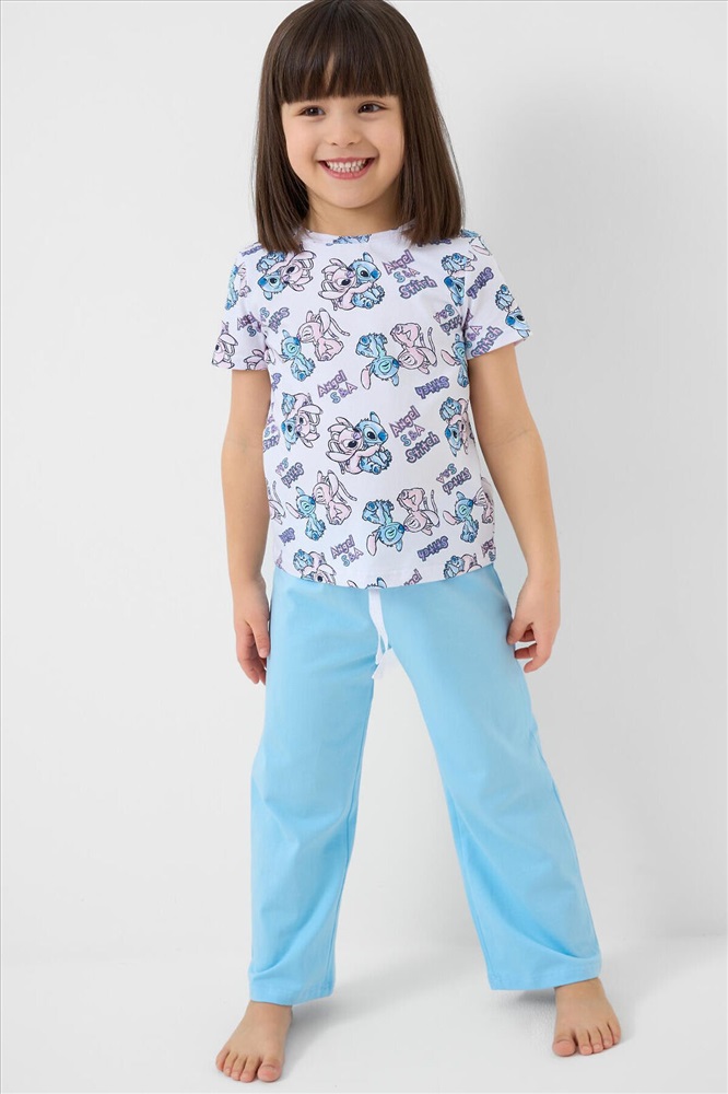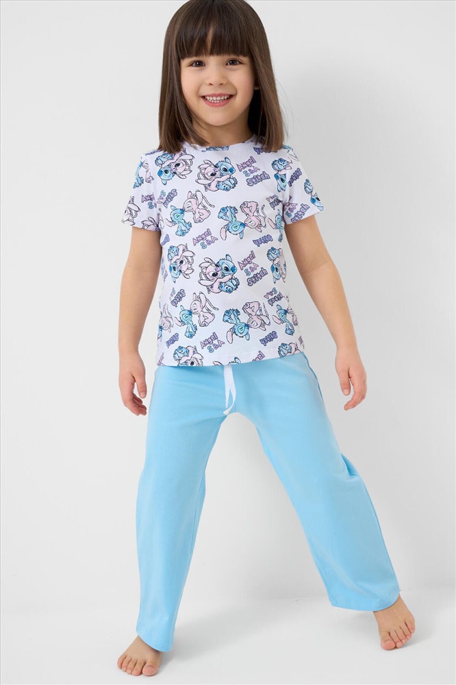 Страна производства: Китай Пижама детская с Лило и Стич для девочки. Комплект состоит из футболки, прямого кроя и длинных брюк. Футболка белая с ярким и милым принтом. Брюки — на удобной резинке. Материал — мягкий, хлопковый трикотаж, приятный к телу.