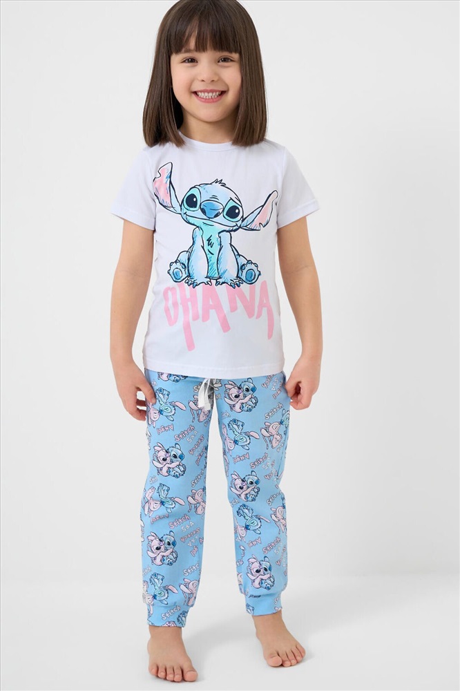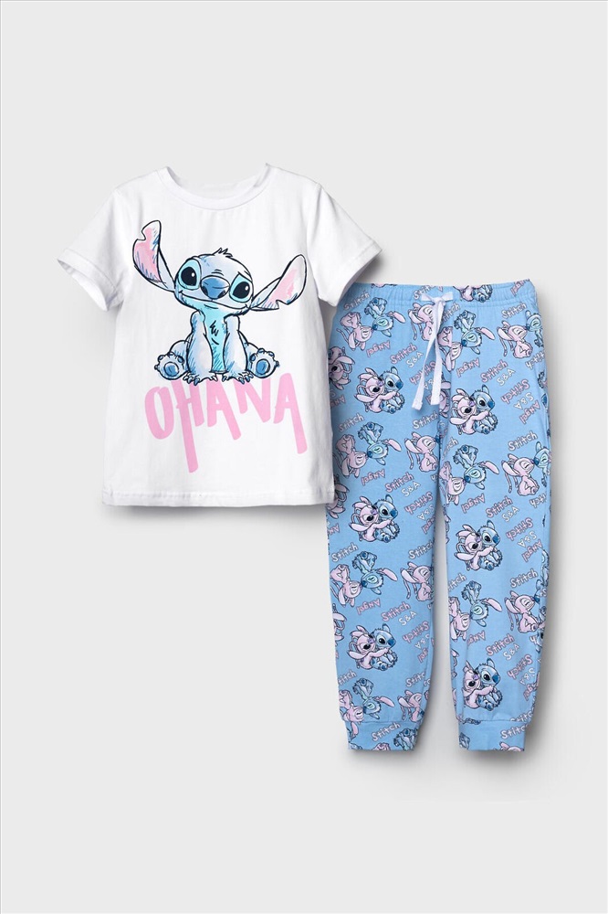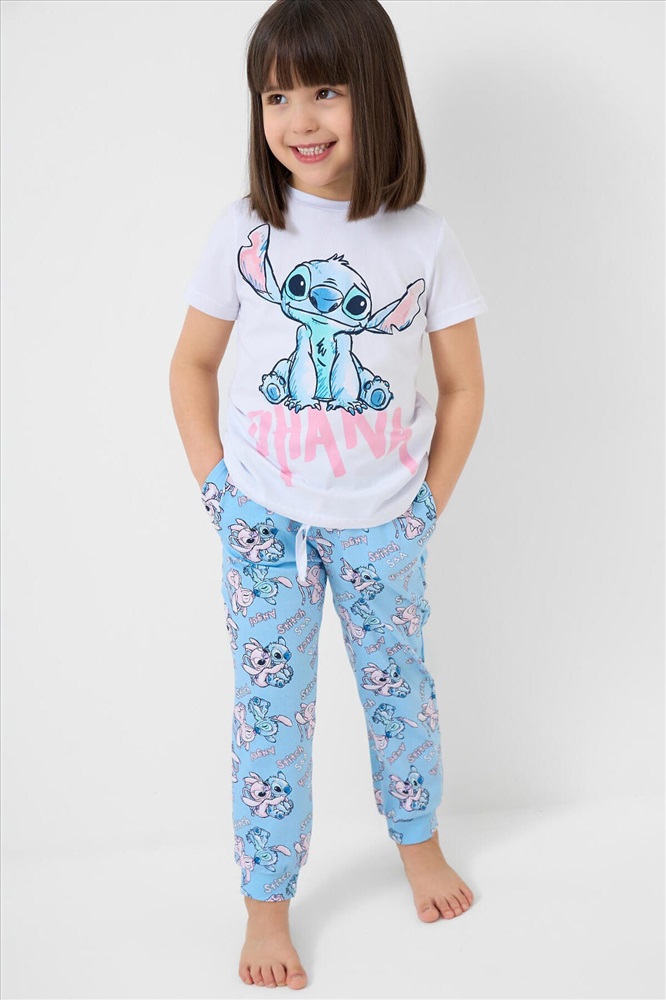 ID товара: 1240912 Состав: 95% хлопок, 5% эластан Сезон: Весна/Лето Пижама детская Лило и Стич для девочки. Комплект включает футболку, прямого кроя с короткими рукавами и длинные брюки. Футболка украшена крупным рисунком Лило и Стич. Брюки выполнены с ярким принтом по всей поверхности. Брюки на резинке с манжетами по низу. Комментарии к товару