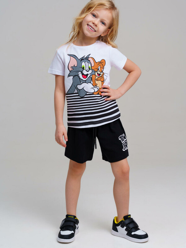 Производитель: PlayToday Костюм детский для девочки. Костюм детский для девочки. Футболка с высоким содержанием хлопка 95%. Благодаря наличию эластана в составе ткани изделие проще в уходе и держит форму. Шорты на резинке со шнурком. Модель выполнена из качественного и приятного на ощупь трикотажа.