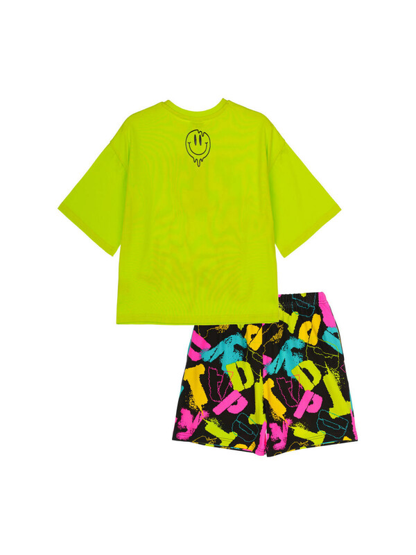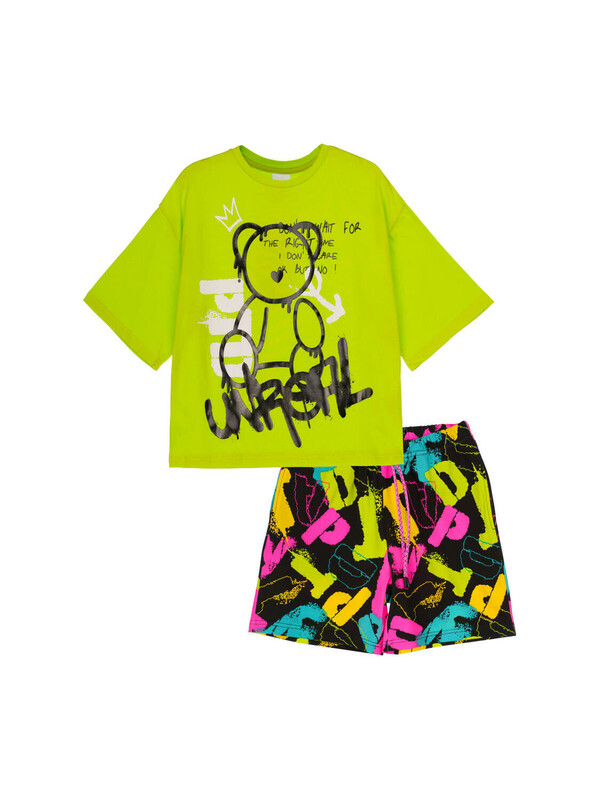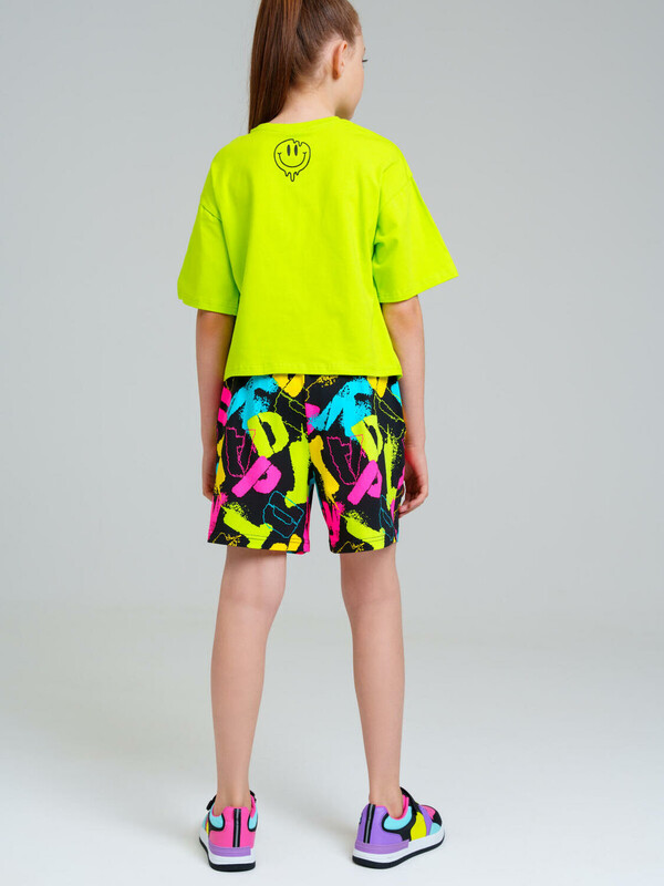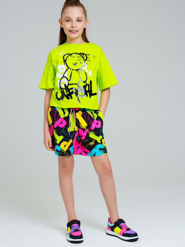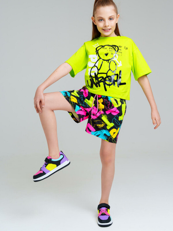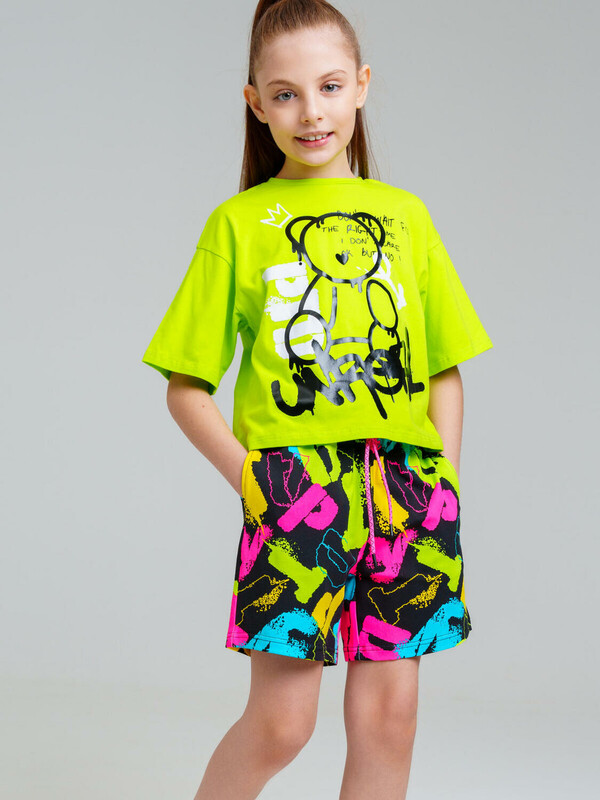 Костюм для девочки подростка. Футболка оверсайз, шорты из эластичного и приятного на ощупь трикотажа джерси. Шорты на резинке со шнурком. Функциональные боковые карманы. Высокое содержание хлопка. Модель выполнена из качественного и приятного на ощупь трикотажа.