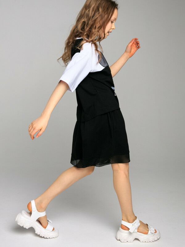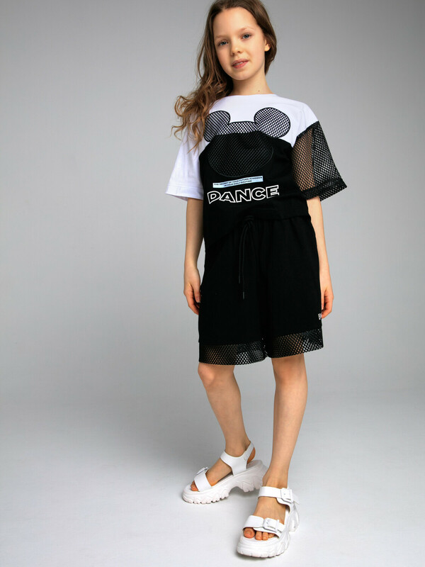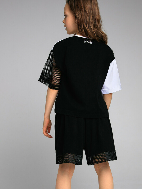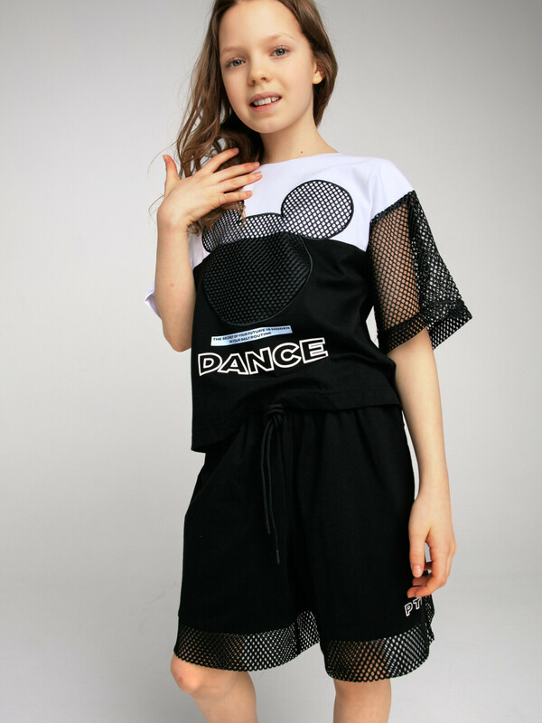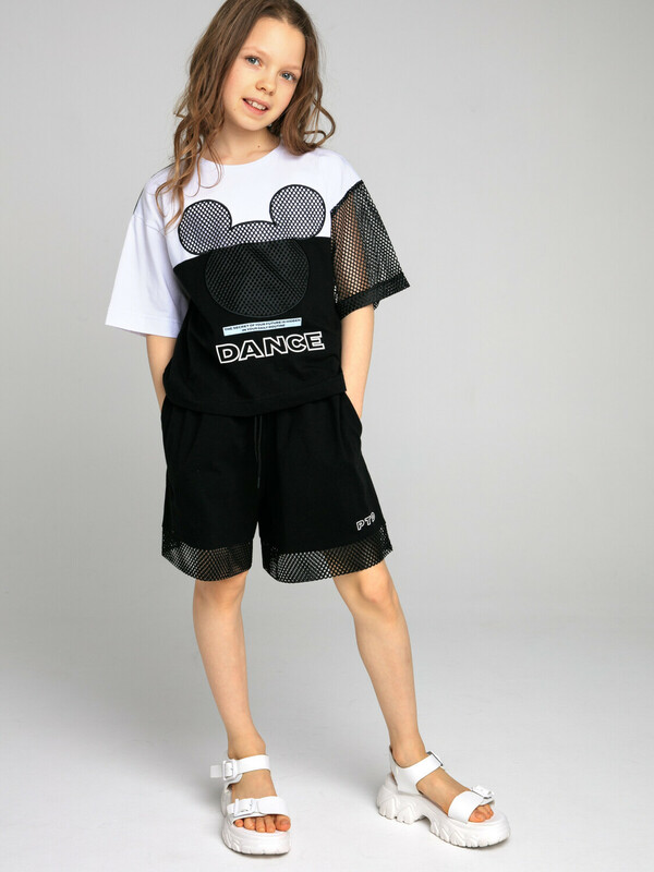 Комплект: футболка oversize и шорты из качественного эластичного и приятного на ощупь трикотажа. Футболка выполнена из трикотажа разных цветов и декорирована сеткой. Шорты с карманами в боковых швах, декорированы сеткой. Эластичный пояс со шнурком. Высокое содержание хлопка 95%. Благодаря наличию эластана в составе ткани изделие держит форму и меньше мнется.