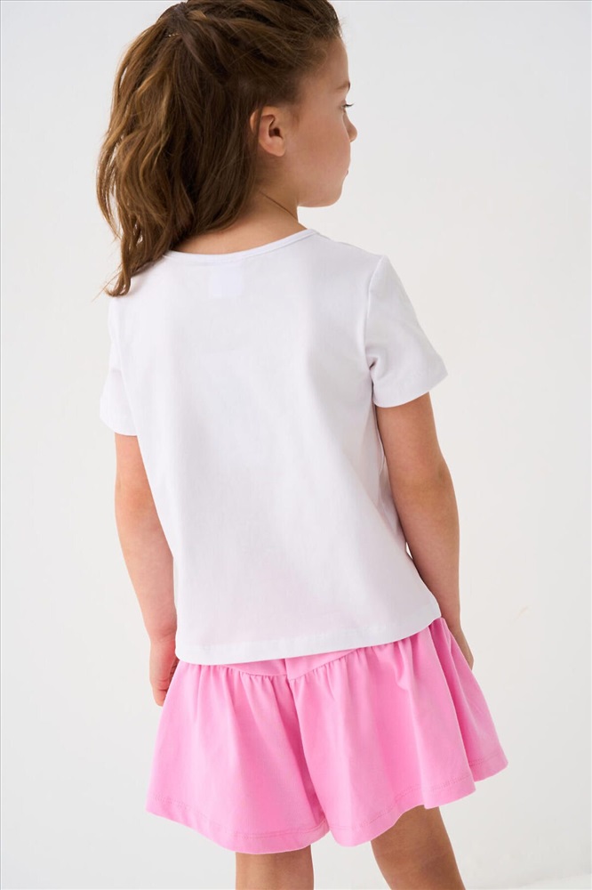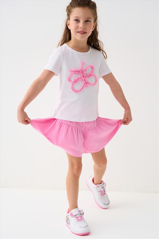 ID товара: 1240036 Состав: 95% хлопок, 5% эластан Сезон: Весна/Лето Детский костюм для девочки. Состоит из футболки с коротким рукавом и шорт. Выполнен из хлопкового трикотажа. Футболка прямого кроя, с красочным принтом бабочки. Шорты свободные, хорошо сидят на талии благодаря эластичному поясу. Комментарии к товару