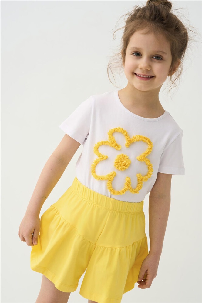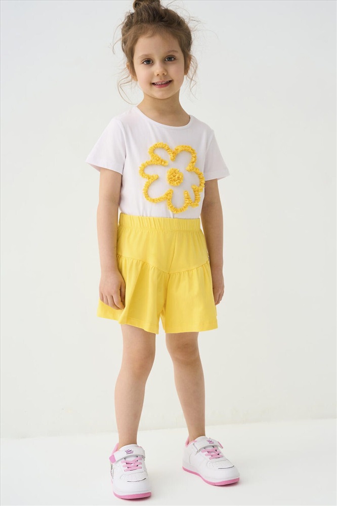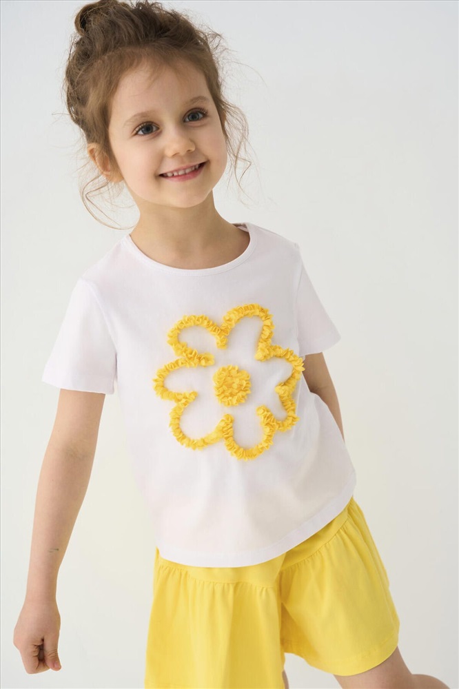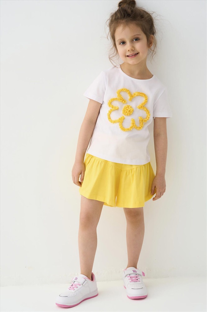 ID товара: 1240042 Состав: 95% хлопок, 5% эластан Сезон: Весна/Лето Детский костюм для девочки. Состоит из футболки с коротким рукавом и шорт. Выполнен из хлопкового трикотажа. Футболка прямого кроя, с красочным принтом цветка. Шорты свободные, хорошо сидят на талии благодаря эластичному поясу. Комментарии к товару