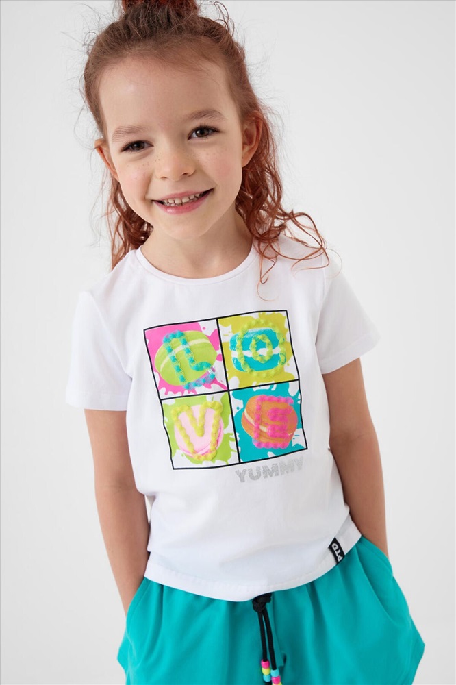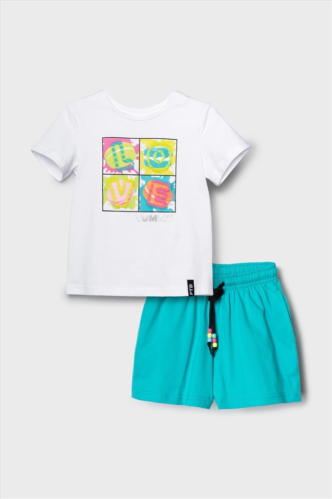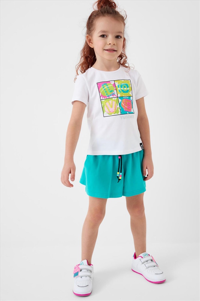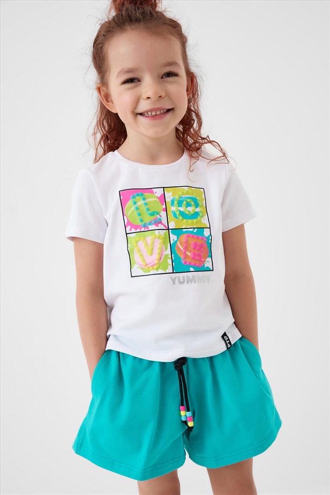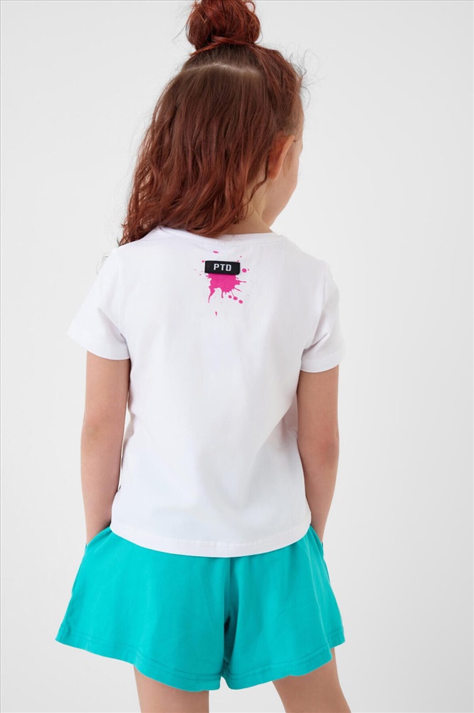 ID товара: 1240325 Состав: 95% хлопок, 5% эластан Сезон: Весна/Лето Детский костюм для девочки. Состоит из футболки с коротким рукавом и шорт. Выполнен из хлопкового трикотажа. Футболка прямого кроя, с красочным принтом и нашивкой. Шорты свободные, короткие, хорошо сидят на талии благодаря эластичному поясу и регулирующему шнурку. Удобные боковые карманы. Комментарии к товару