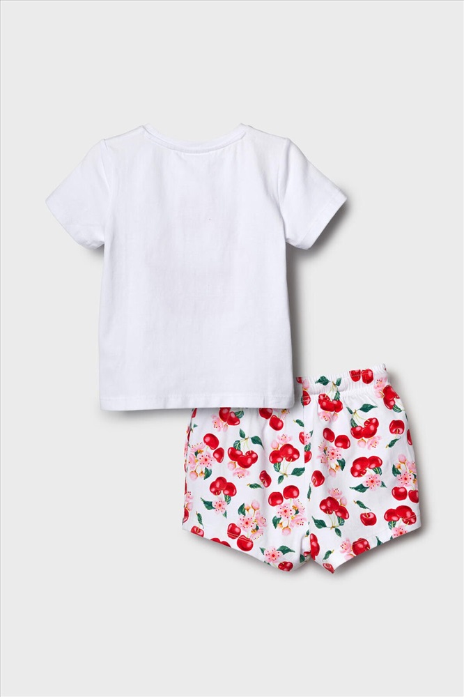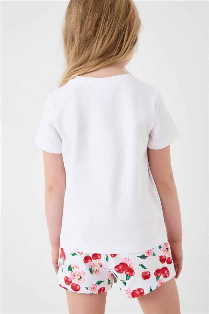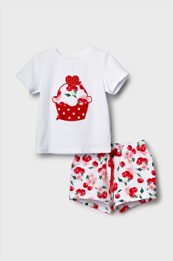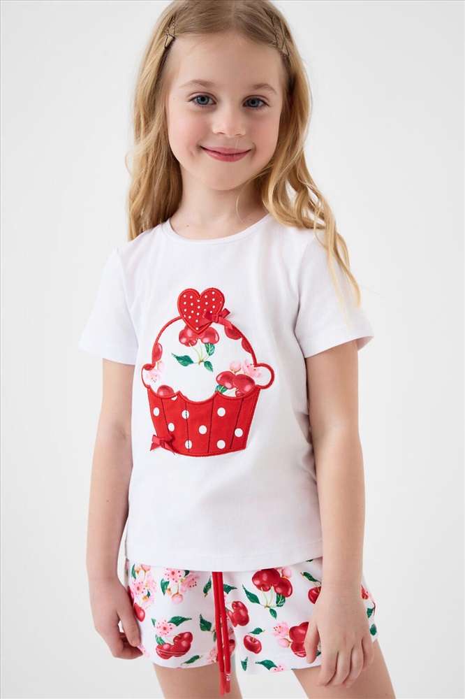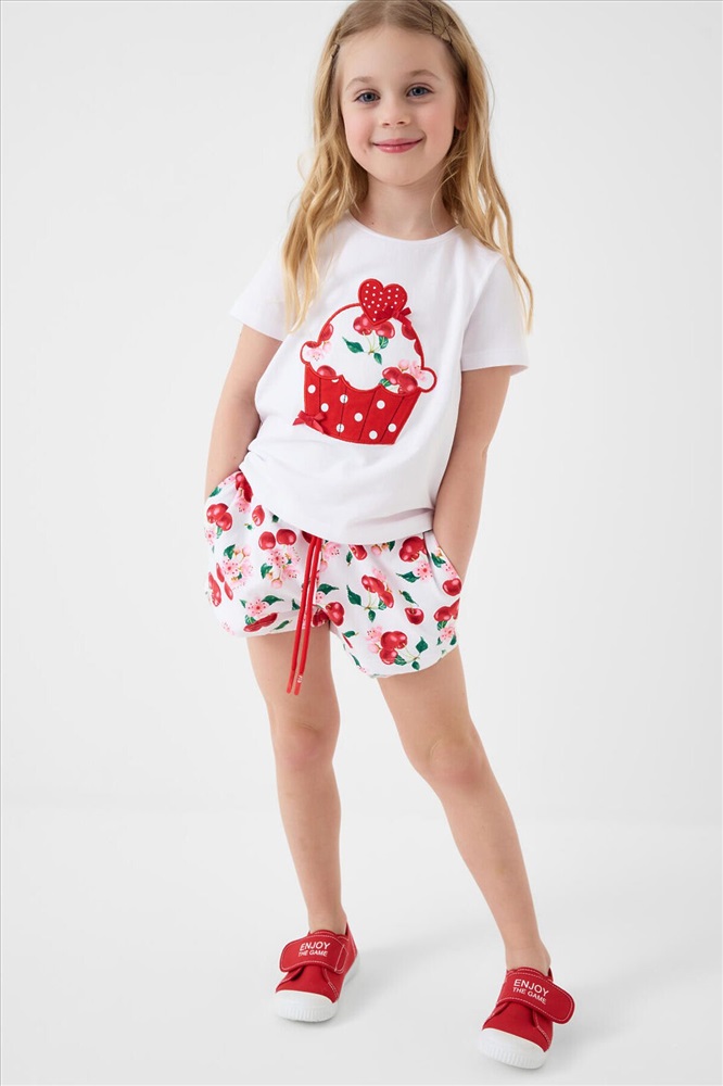 ID товара: 1242844 Состав: 95% хлопок, 5% эластан Сезон: Весна/Лето Детский костюм для девочки. Состоит из футболки с коротким рукавом и шорт. Выполнен из хлопкового трикотажа. Футболка прямого кроя, с красочным принтом и объемными бантиками. Шорты свободные, хорошо сидят на талии благодаря эластичному поясу и регулирующему шнурку. Удобные боковые карманы. Комментарии к товару
