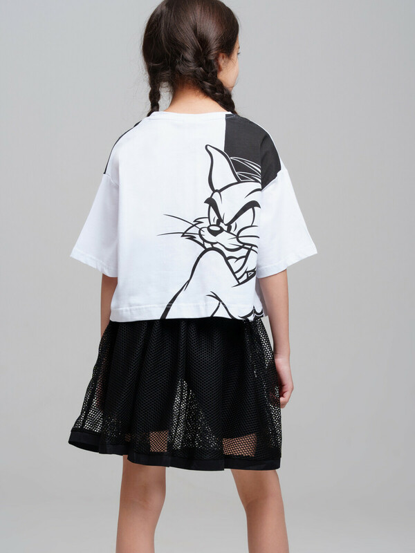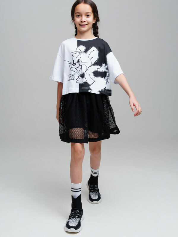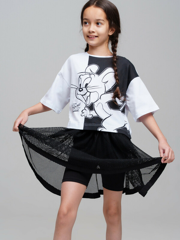 Костюм для девочки подростка.Футболка и юбка-шорты классической посадки. Костюм из качественного и приятного на ощупь трикотажа джерси с высоким содержанием хлопка 95%. Благодаря наличию эластана в составе ткани изделие проще в уходе и держит форму. Юбка шорты на резинке. Декор из сетки. Модель выполнена из качественного и приятного на ощупь трикотажа.