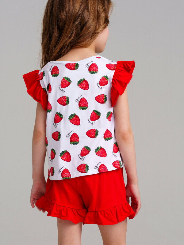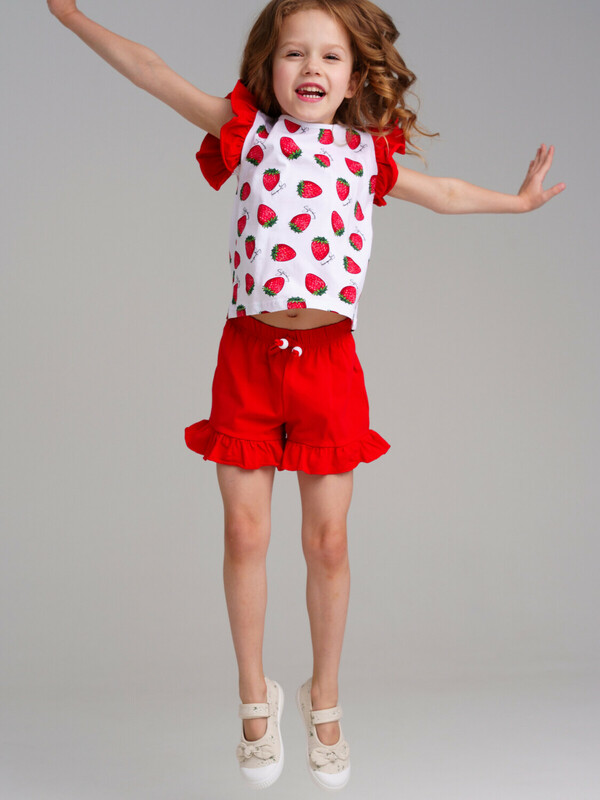 Комплект трикотажный для девочек: фуфайка (футболка), юбка-шорты
