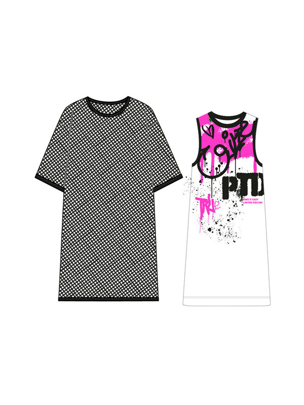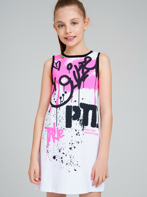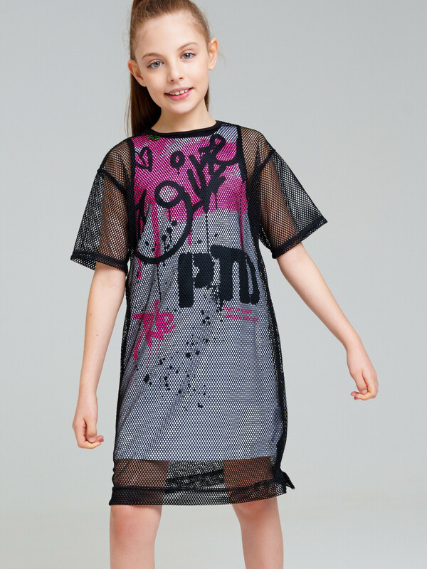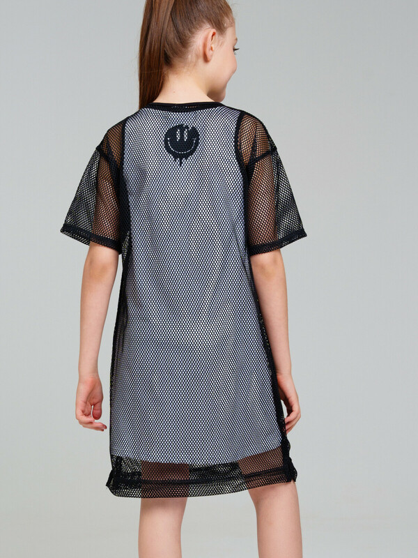 Комплект для девочки подростка. Платье из эластичного и приятного на ощупь трикотажа джерси. Высокое содержание хлопка 95%. Благодаря наличию эластана в составе ткани изделие держит форму и меньше мнется. Туника из сетки. Модель выполнена из качественного и приятного на ощупь трикотажа.