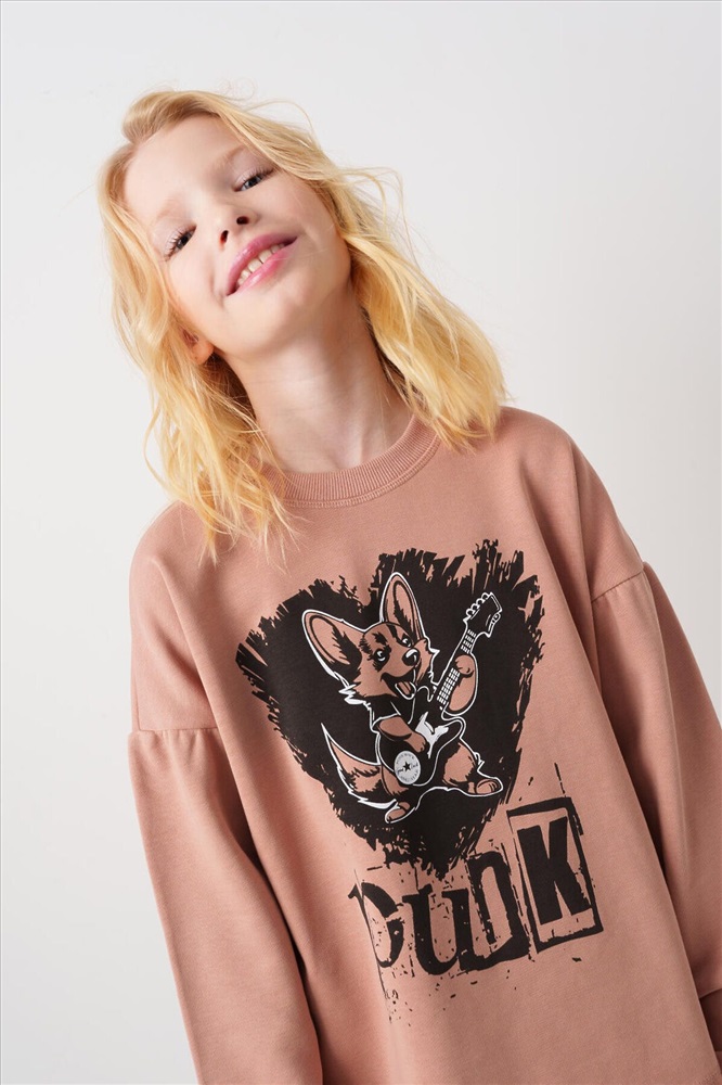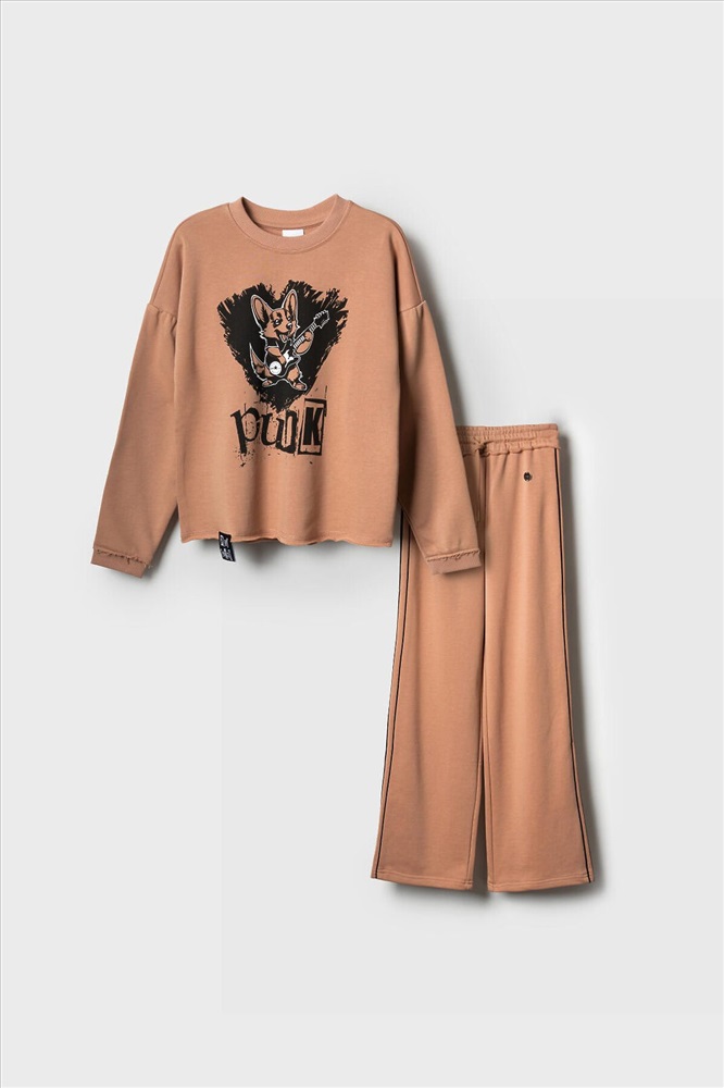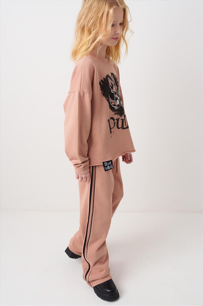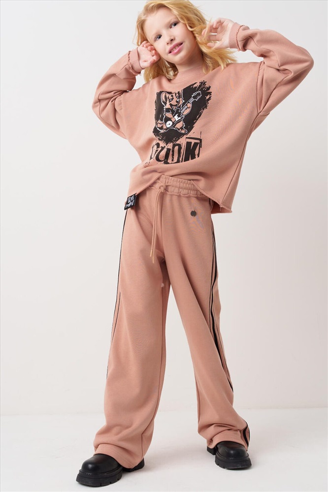 ID товара: 1240165 Состав: 60% хлопок, 40% полиэстер Сезон: Весна/Лето Спортивный костюм для девочки подростка. Комплект выполнен из хлопкового футера и состоит из свитшота и широких брюк на резинке. Толстовка оверсайз с красочным принтом и нашивкой. Рукава-фонарики. Манжеты выполнены из эластичного риба. Широкие брюки — комфортные, с эластичным поясом и шнуром для регулировки посадки. Удобные боковые карманы. Декоративные лампасы. Комментарии к товару