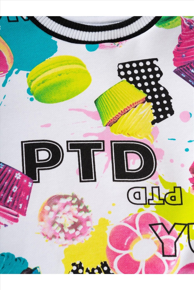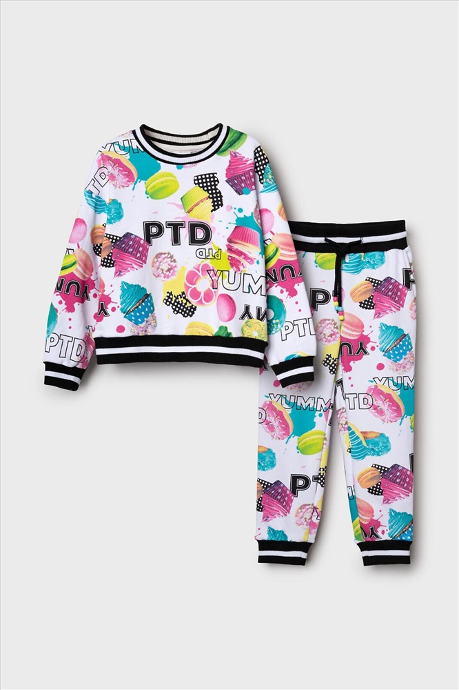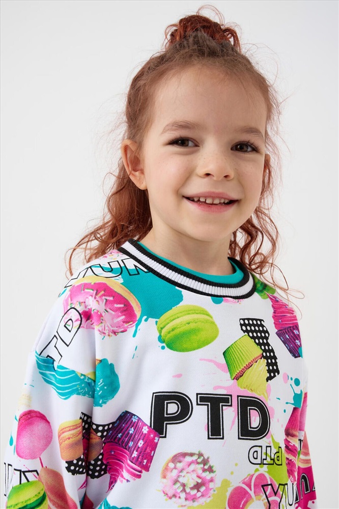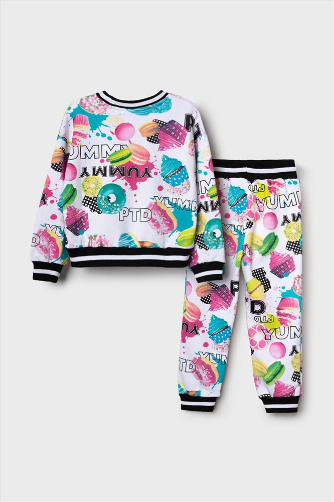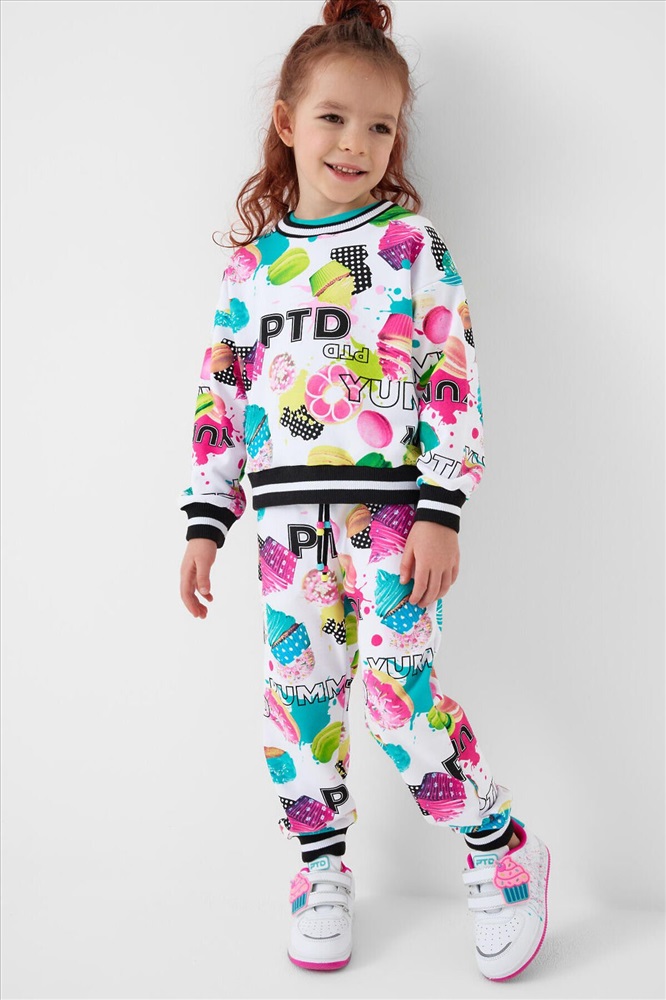 ID товара: 1240207 Состав: 60% хлопок, 40% полиэстер Сезон: Весна/Лето Детский спортивный костюм для девочки. Комплект выполнен из хлопкового футера и состоит из свитшота и джогеров на резинке. Красочный принт с донатами, капкейками и макарунами. Толстовка прямого кроя. Манжеты и пояс выполнены из эластичного риба, благодаря чему изделие хорошо держит форму. Брюки джоггеры — комфортные, с эластичным поясом и шнуром для регулировки посадки. Удобные боковые карманы. Низ штанин собран на резинку. Комментарии к товару