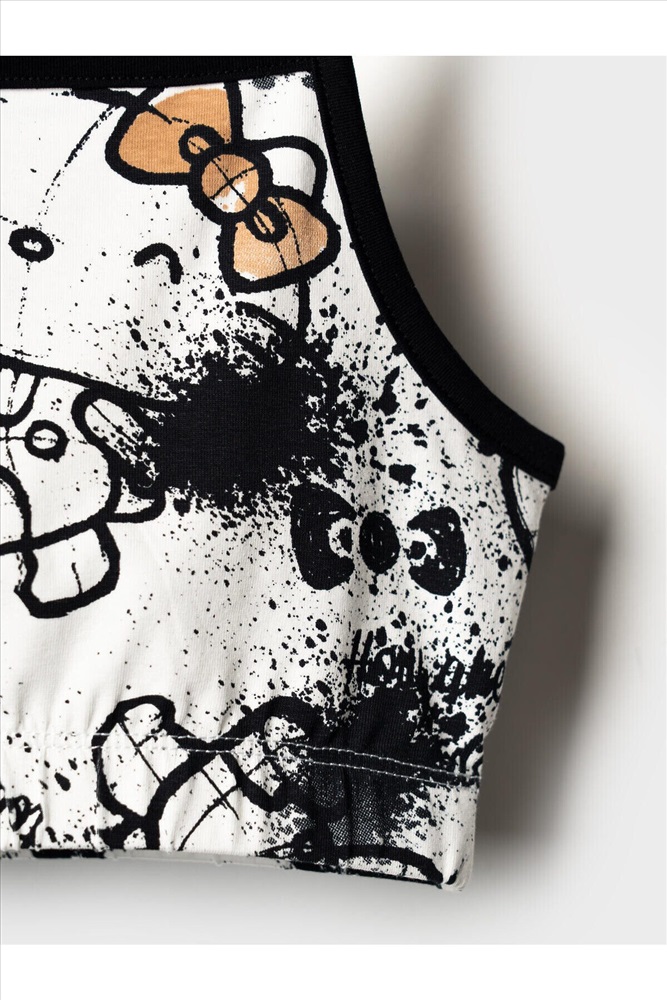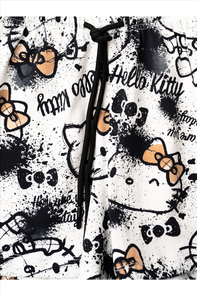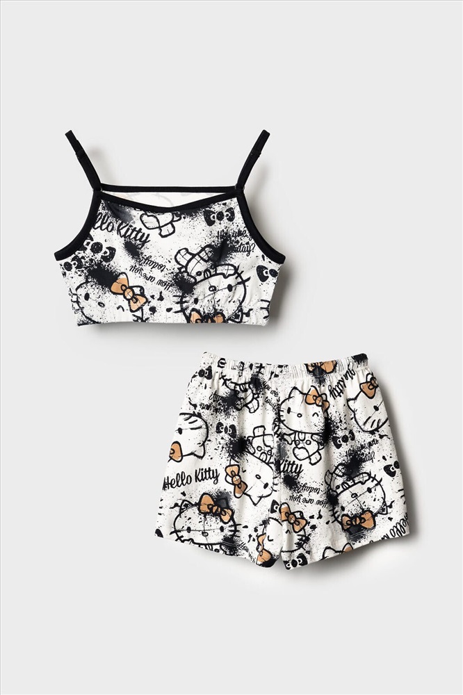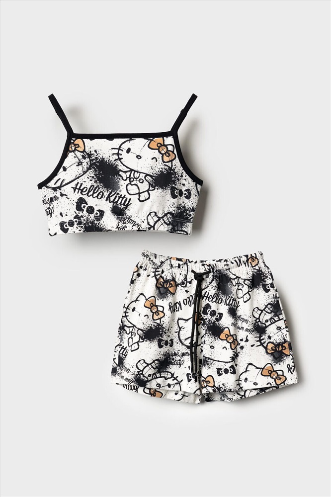 ID товара: 1240138 Состав: 95% хлопок, 5% эластан Сезон: Весна/Лето Комплект для девочки подростка. Включает топ и шорты, выполненные из мягкого хлопкового трикотажа. Топ с тонкими бретелями. Шорты имеют эластичный пояс с завязками для удобной регулировки посадки. Красочные принты с любимым мультяшным персонажем Хеллоу Китти. Комментарии к товару