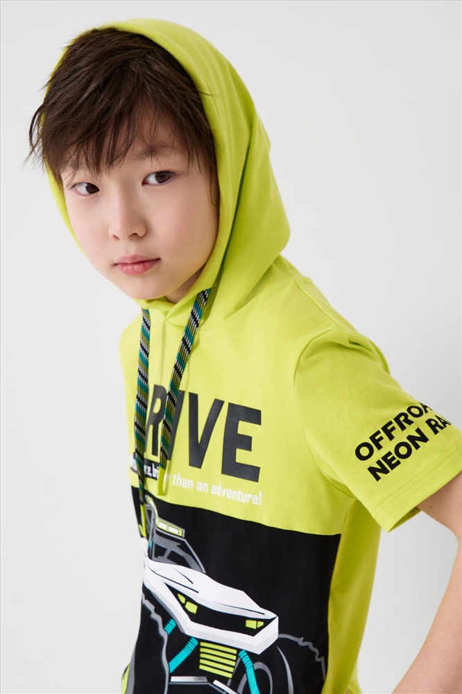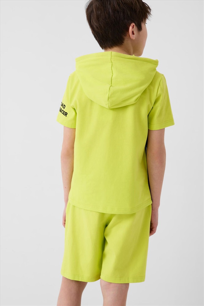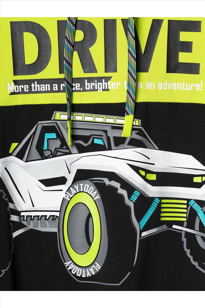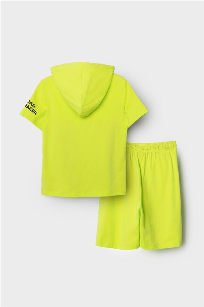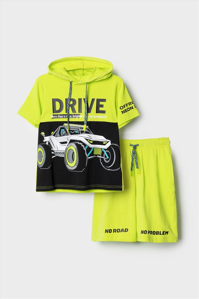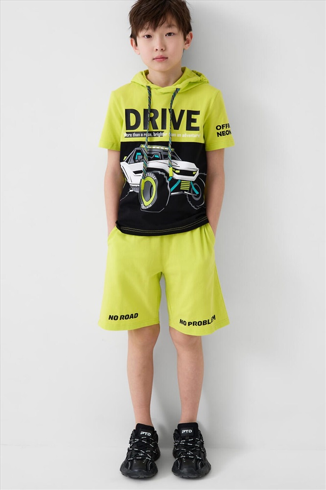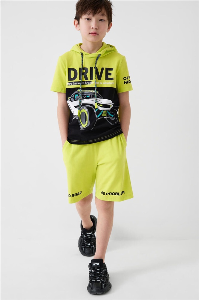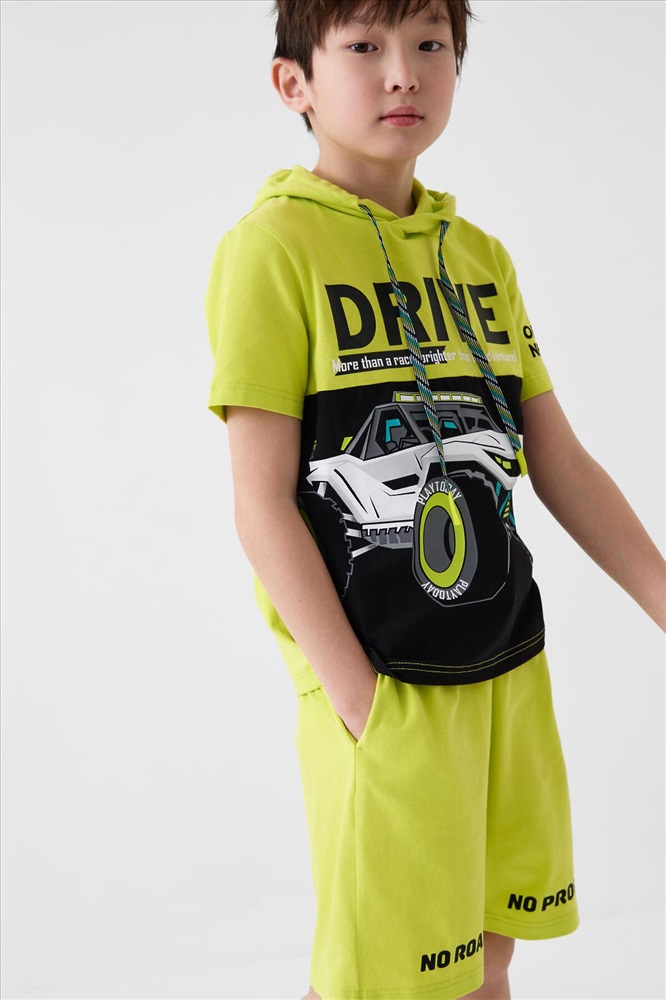 ID товара: 1239839 Состав: 95% хлопок, 5% эластан Сезон: Весна/Лето Костюм для мальчика подростка. Состоит из футболки и шорт. Выполнен из хлопкового трикотажа. Футболка прямого кроя с капюшоном. Регулировка капюшона шнуром. Яркий принт в гоночной тематике. Шорты свободные, с эластичным поясом и шнурком для регулировки посадки. По бокам расположены карманы. Комментарии к товару