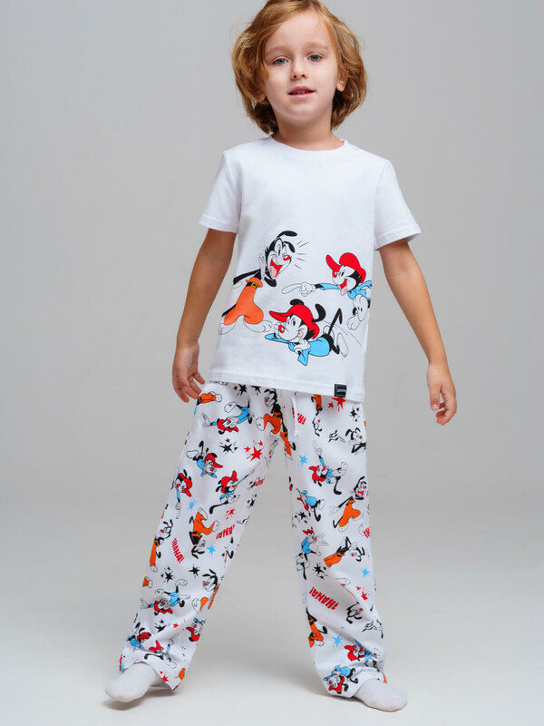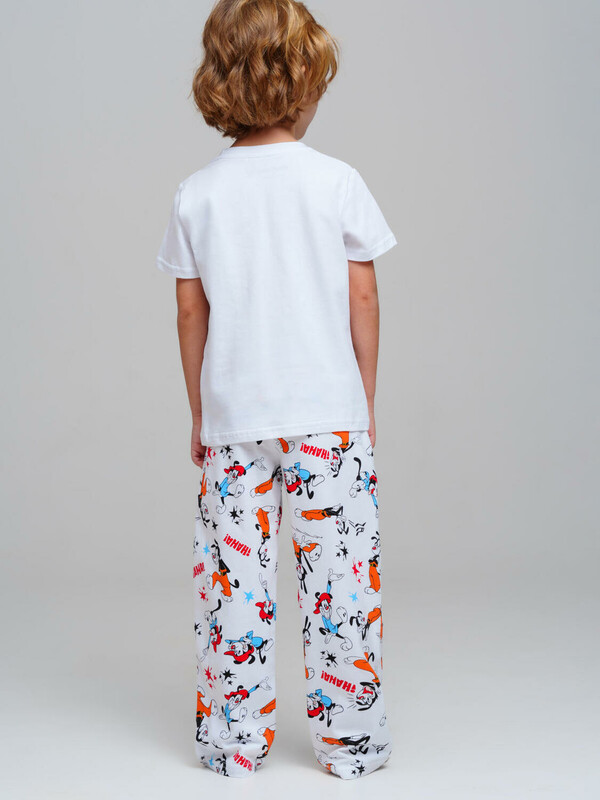 Пижама детская для мальчика. Футболка и брюки из эластичного и приятного на ощупь трикотажа. Штаны на резинке со шнурком. Высокое содержание хлопка 95%. Благодаря наличию эластана в составе ткани изделие держит форму и меньше мнется.