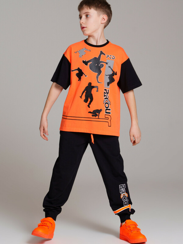 Производитель: PlayToday Комплект: футболка oversize и брюки. Выполнен из качественного футера. Футболка с цельнокроеными рукавами. Брюки с карманами в боковых швах. Эластичный пояс на резинке. По низу брюк эластичные манжеты.