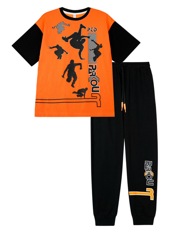 Состав:Футболка: 60% хлопок, 35% полиэстер, 5% эластан; Брюки: 95% хлопок, 5% эластан