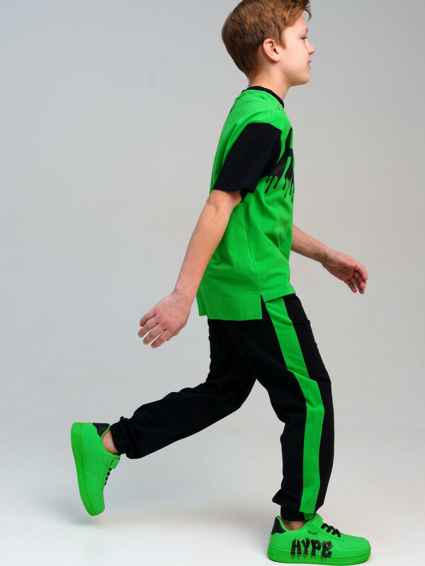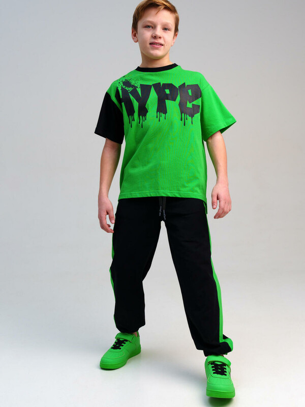 Спортивный оверсайз костюм для мальчика подростка. Футболка и брюки с высоким содержанием хлопка. Штаны на резинке со шнурком. Функциональные боковые карманы. Модель выполнена из качественного и приятного на ощупь трикотажа.
