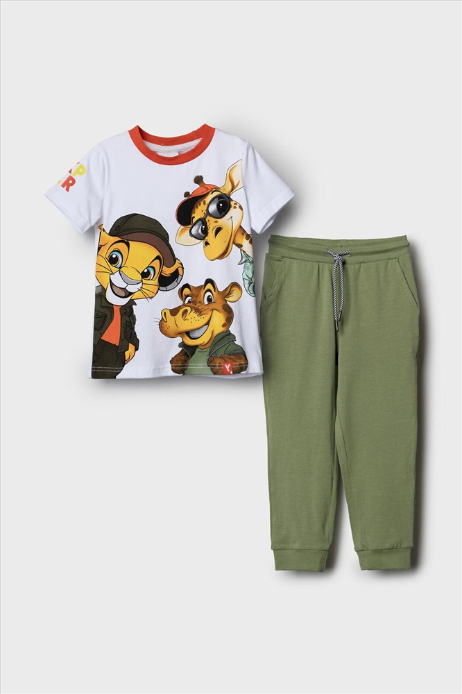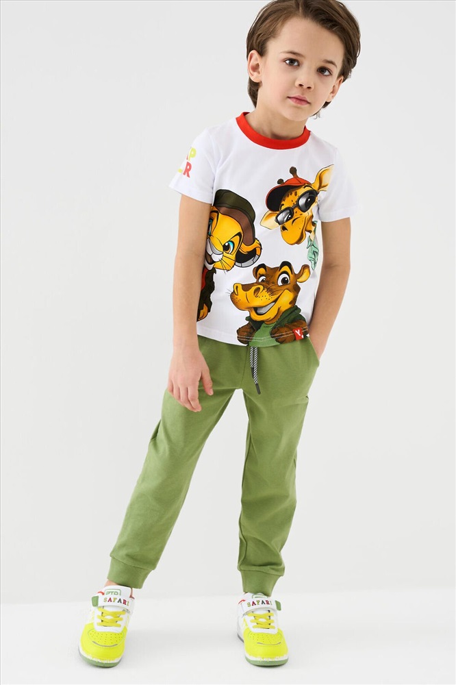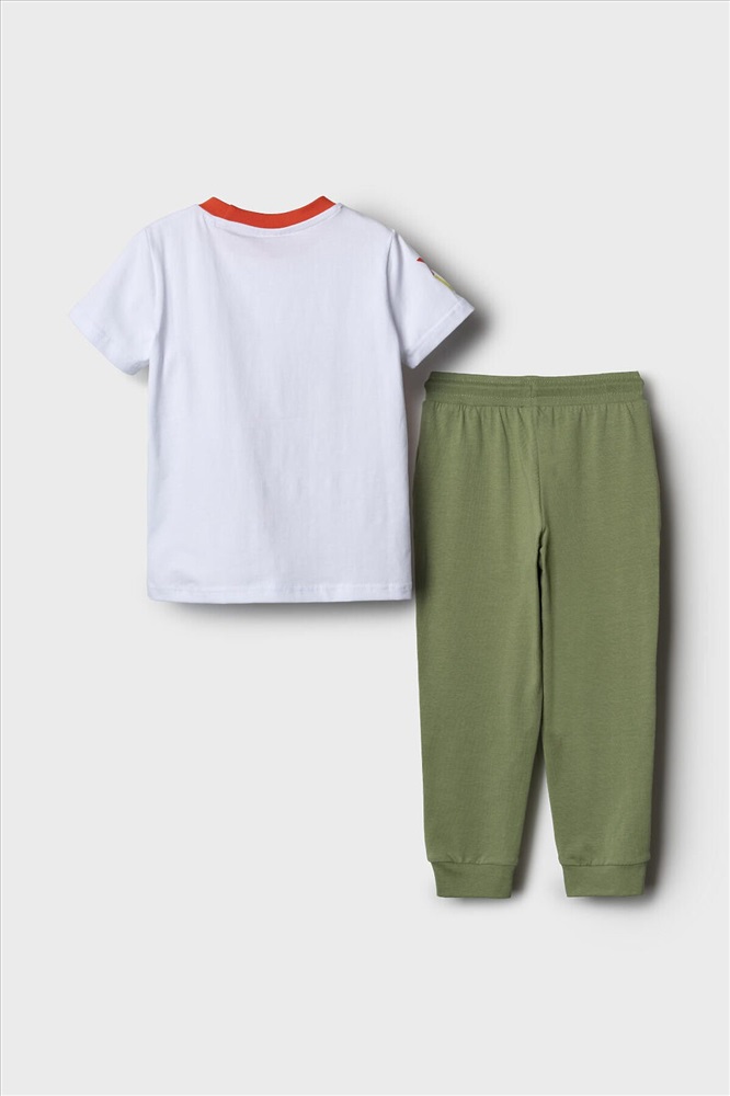 ID товара: 1239805 Состав: 95% хлопок, 5% эластан Сезон: Весна/Лето Детский костюм для мальчика. Состоит из футболки с коротким рукавом и брюк на резинке. Футболка прямого кроя с яркими принтами и нашивкой. Брюки выполнены из плотного хлопкового трикотажа. Джоггеры с комфортной посадкой, пояс на резинке дополнен шнурком. Удобные боковые карманы. Внизу — эластичные манжеты. Комментарии к товару