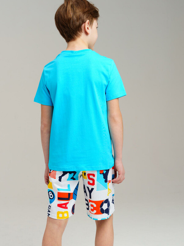 Костюм для мальчика подростка. Комплект: футболка, шорты с высоким содержанием хлопка 95%. Благодаря наличию эластана в составе ткани изделие проще в уходе и держит форму. Шорты на резинке со шнурком. Боковые карманы. Модель выполнена из качественного и приятного на ощупь трикотажа.
