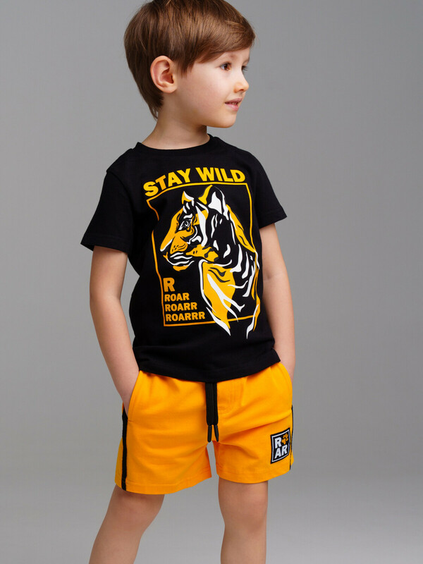 Комплект: футболка и шорты из качественного эластичного и приятного на ощупь трикотажа. Футболка выполнена из трикотажа разных цветов. Шорты с карманами в боковых швах. Эластичный пояс со шнурком. Посадка regular fit – классический крой. Высокое содержание хлопка 95%. Благодаря наличию эластана в составе ткани изделие держит форму и меньше мнется.