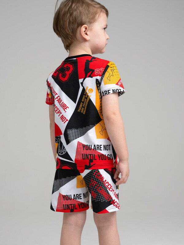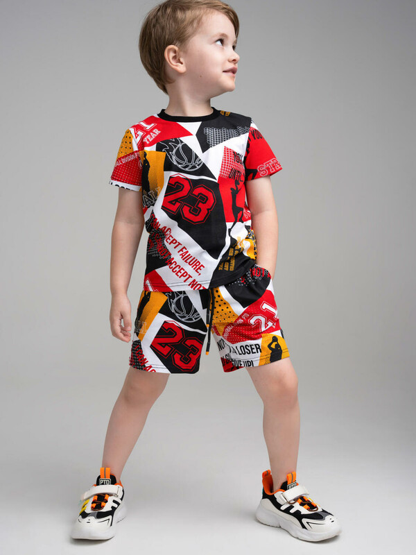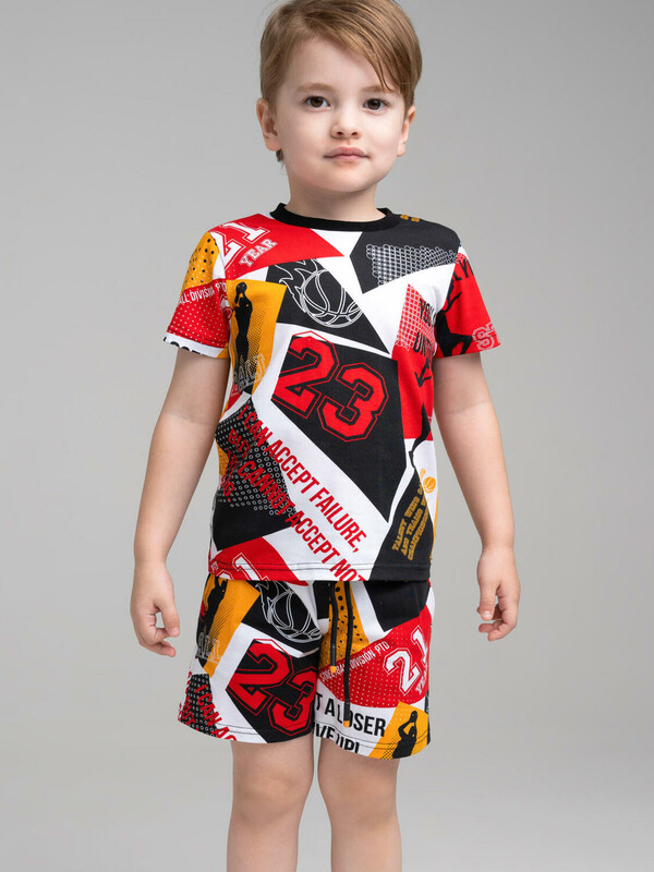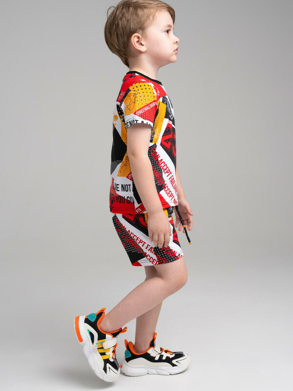 Костюм детский для мальчика. Комплект: футболка, шорты с высоким содержанием хлопка 95%. Благодаря наличию эластана в составе ткани изделие проще в уходе и держит форму. Шорты на резинке со шнурком. Боковые карманы. Модель выполнена из качественного и приятного на ощупь трикотажа.