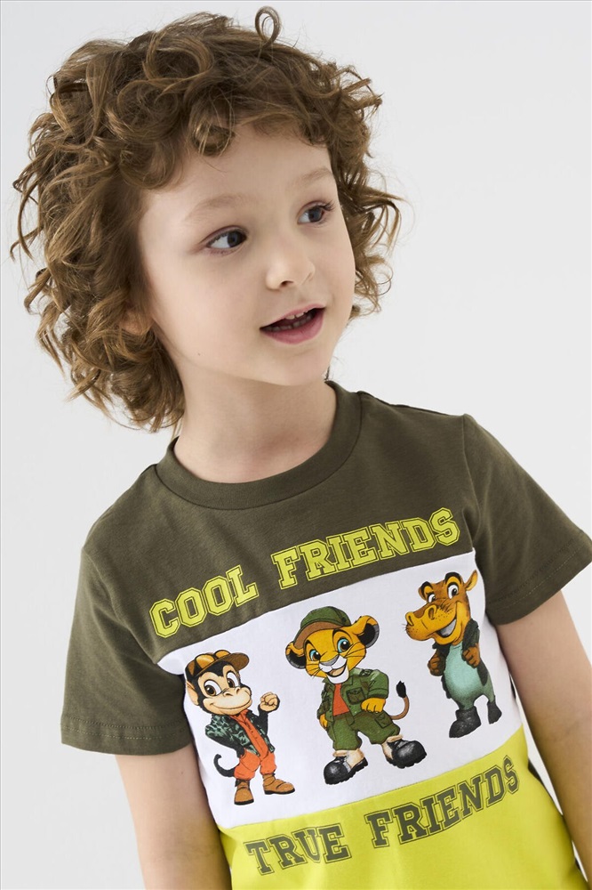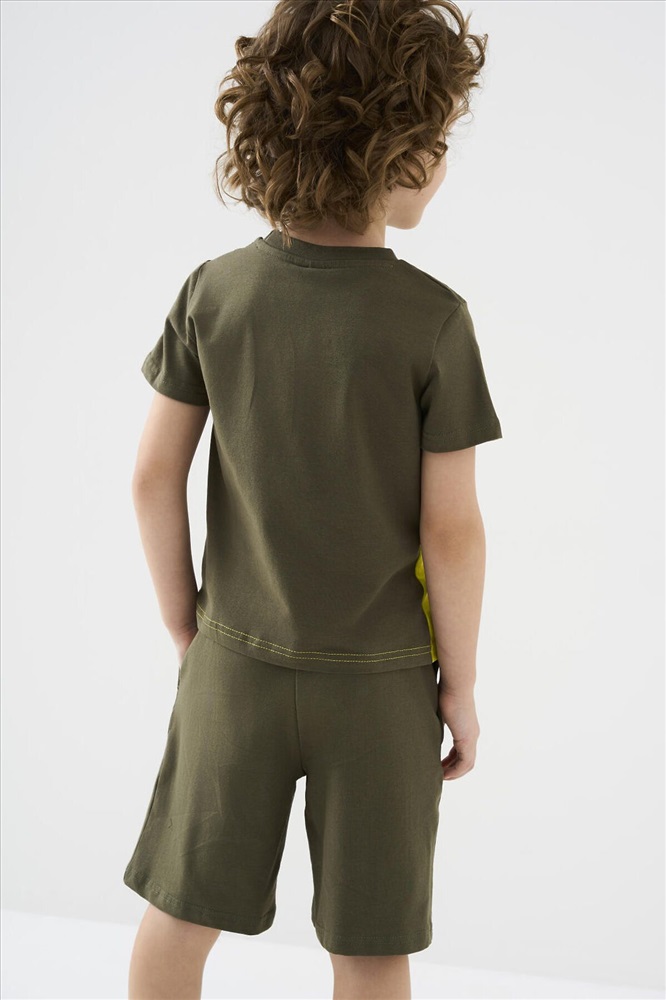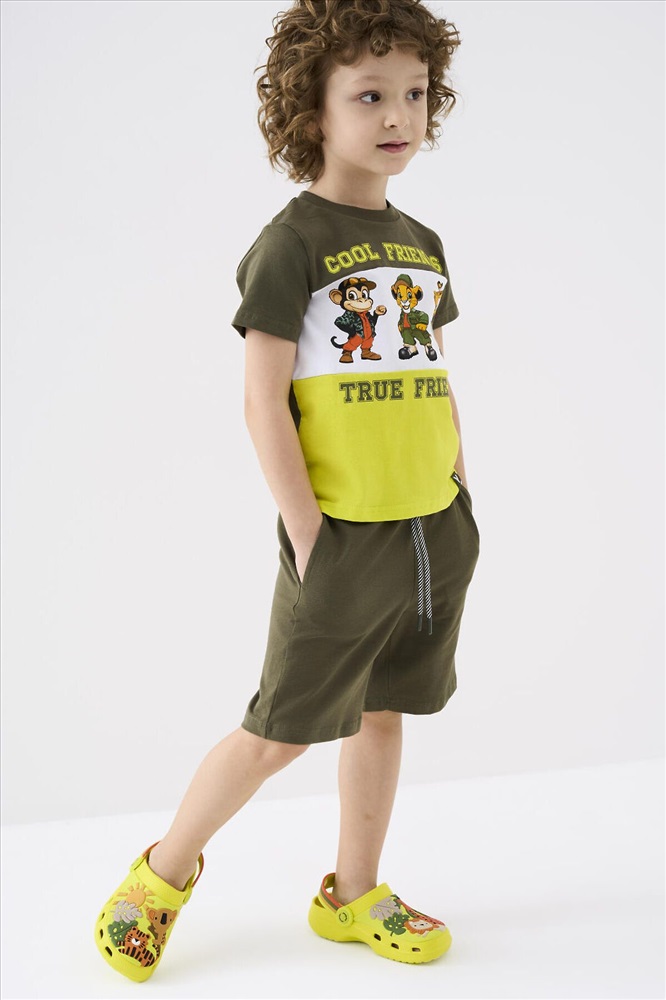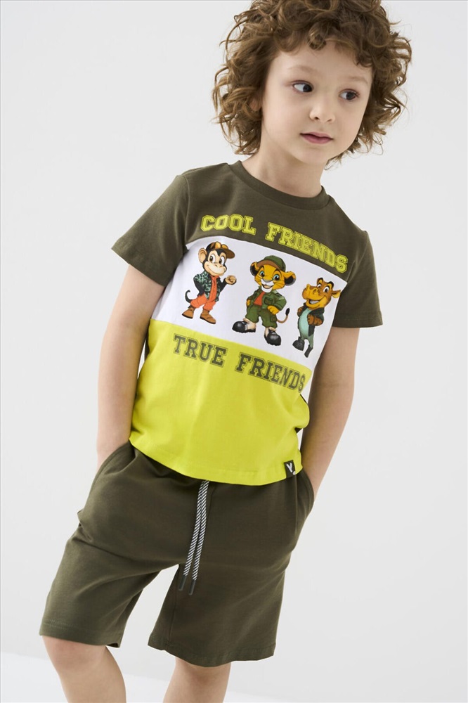 ID товара: 1239804 Состав: 95% хлопок, 5% эластан Сезон: Весна/Лето Детский костюм для мальчика. Состоит из футболки и шорт. Выполнен из хлопкового трикотажа. Футболка прямого кроя, с коротким рукавом. Яркий принт и нашивка. Шорты свободные, с эластичным поясом и шнурком для регулировки посадки. По бокам расположены карманы. Комментарии к товару