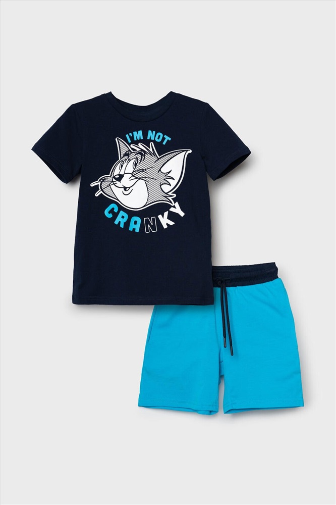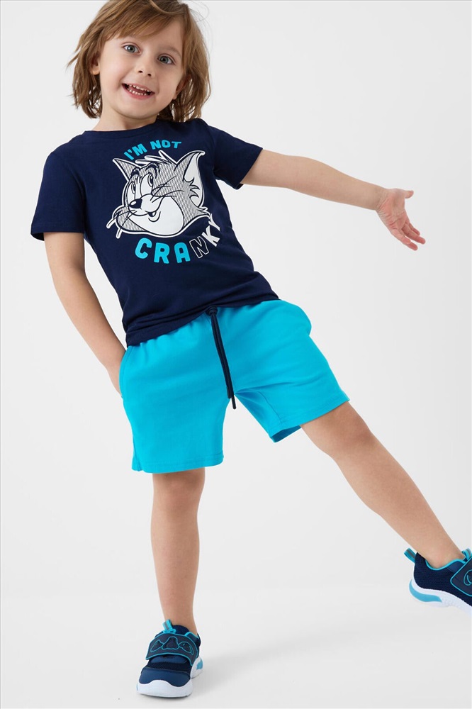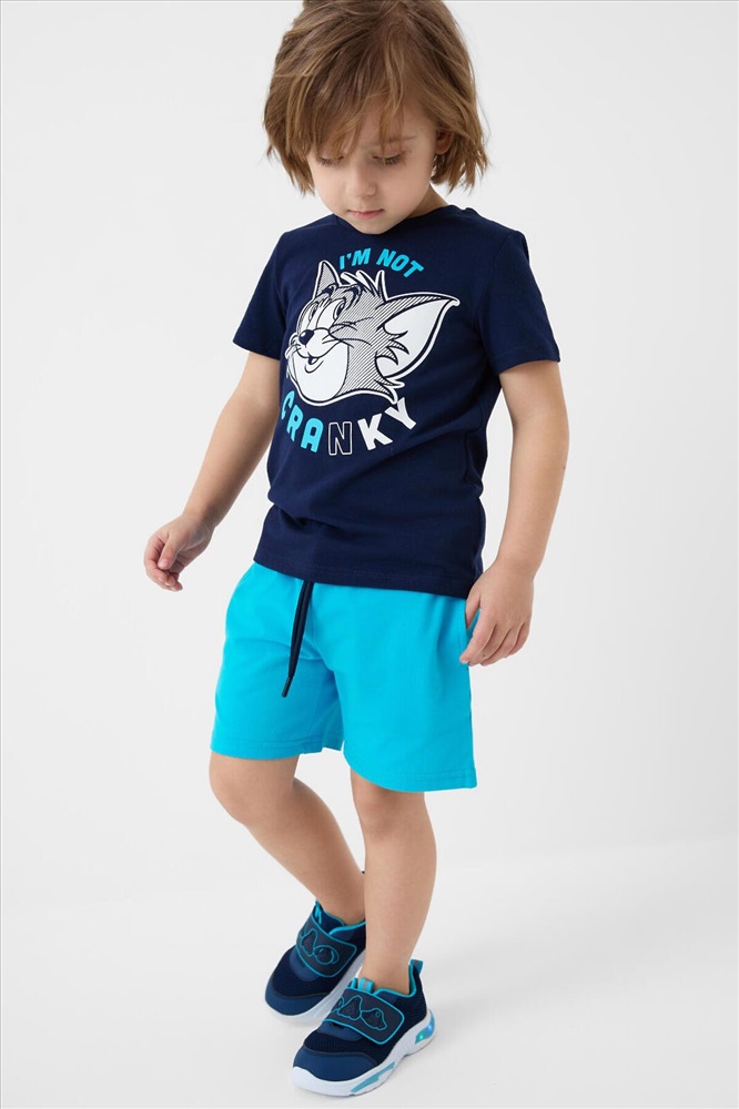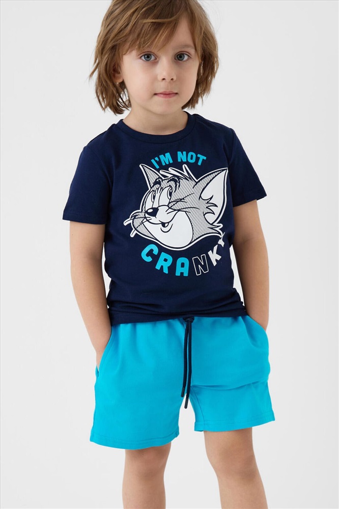 ID товара: 1240112 Состав: 95% хлопок, 5% эластан Сезон: Весна/Лето Детский костюм для мальчика. Состоит из футболки и шорт. Выполнен из хлопкового трикотажа. Футболка прямого кроя, с коротким рукавом. Яркий принт с любимыми персонажами "Том и Джерри". Шорты свободные, с эластичным поясом и шнурком для регулировки посадки. По бокам расположены карманы. Комментарии к товару