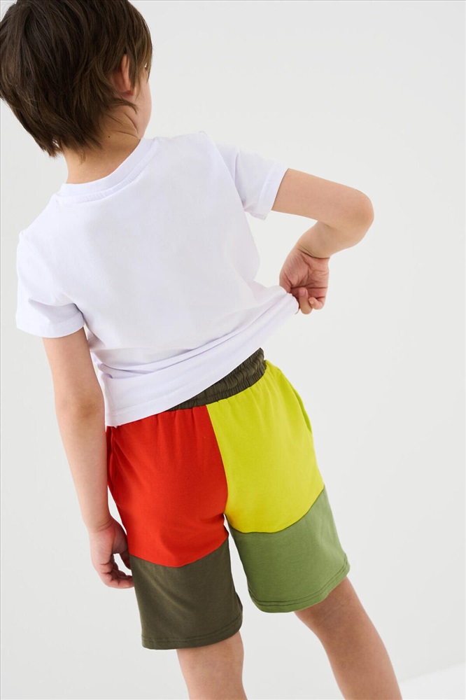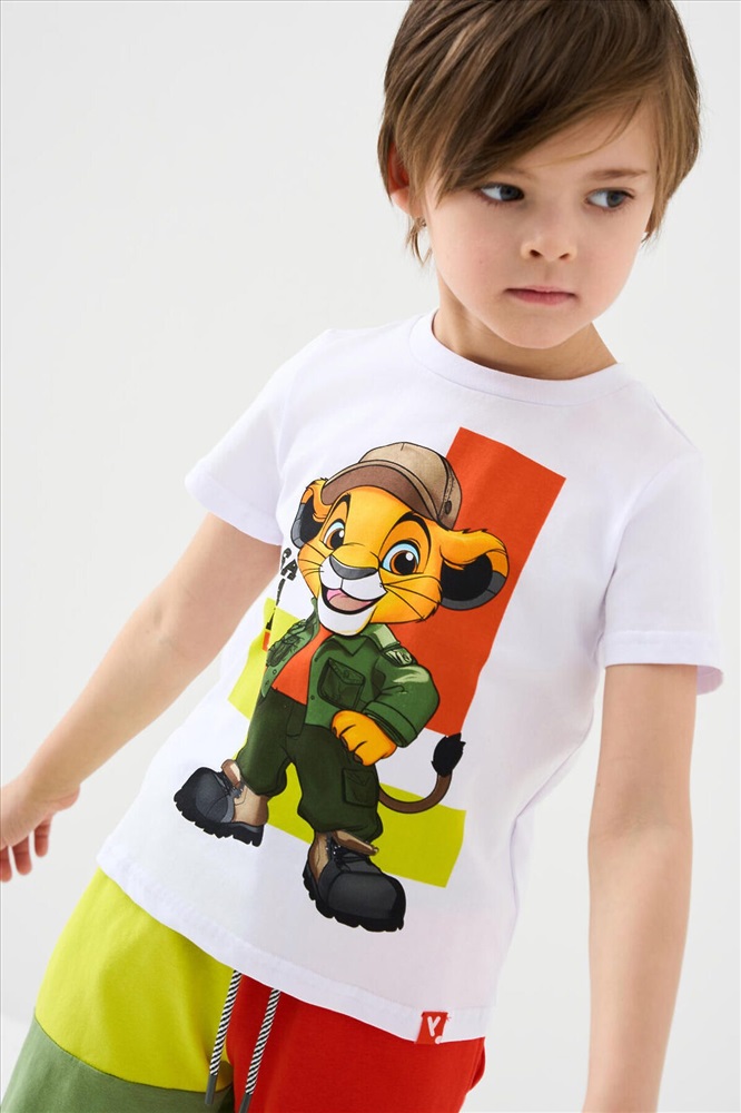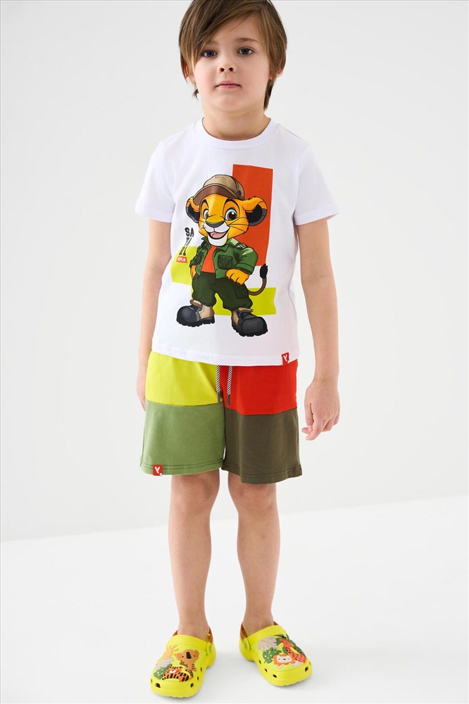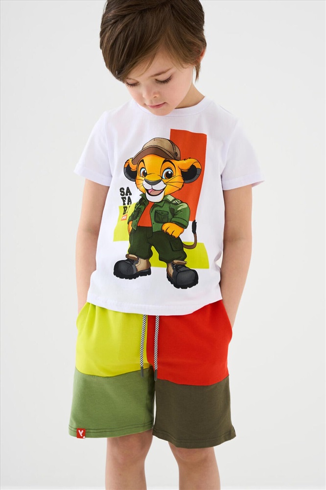 ID товара: 1240655 Состав: 95% хлопок, 5% эластан Сезон: Весна/Лето Детский костюм для мальчика. Состоит из футболки и шорт. Выполнен из хлопкового трикотажа. Футболка прямого кроя, с коротким рукавом. Яркий принт со львом и нашивки. Шорты свободные, с эластичным поясом и шнурком для регулировки посадки. По бокам расположены карманы. Комментарии к товару