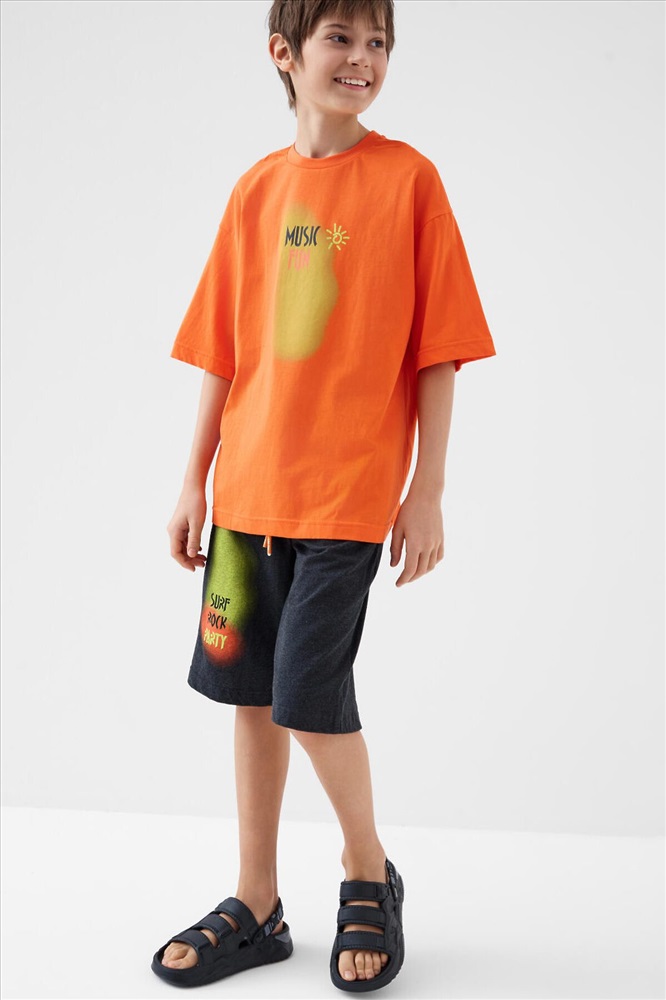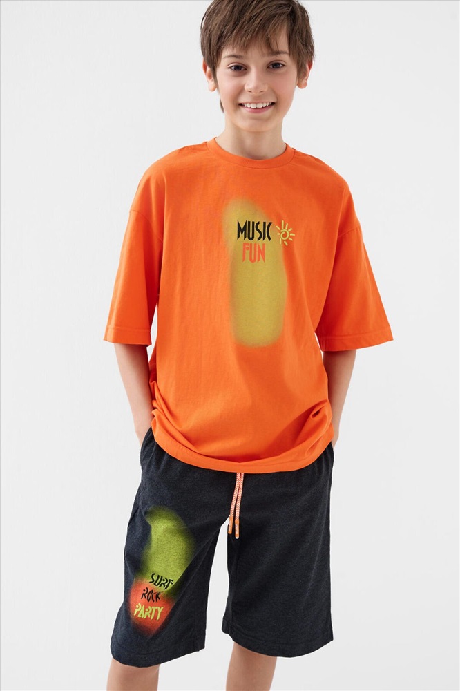 ID товара: 1242467 Состав: 100% хлопок Сезон: Весна/Лето Костюм для мальчика подростка. Состоит из футболки и шорт. Выполнен из хлопкового трикотажа. Футболка оверсайз, с коротким рукавом и ярким принтом. Шорты свободные, с эластичным поясом и шнурком для регулировки посадки. По бокам расположены карманы. Комментарии к товару