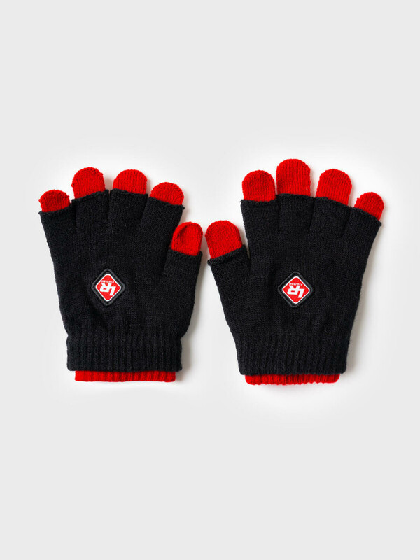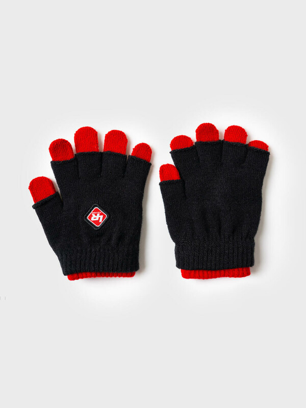 Набор детский для мальчика: перчатки и митенки. Оба изделия связаны из плотного трикотажа, хорошо облегают руку и имеют эластичную манжету. У перчаток – длинные пальцы, у митенок – открытые. Манжеты украшены полосами контрастного цвета, а на тыльной стороне есть силиконовый шеврон с логотипом.