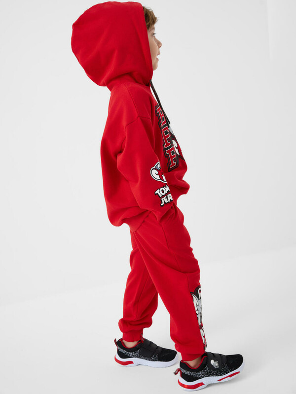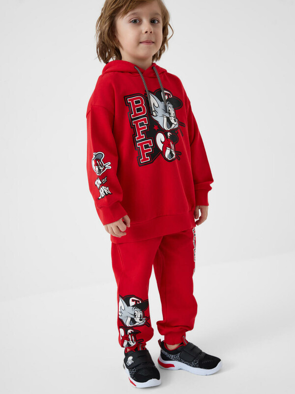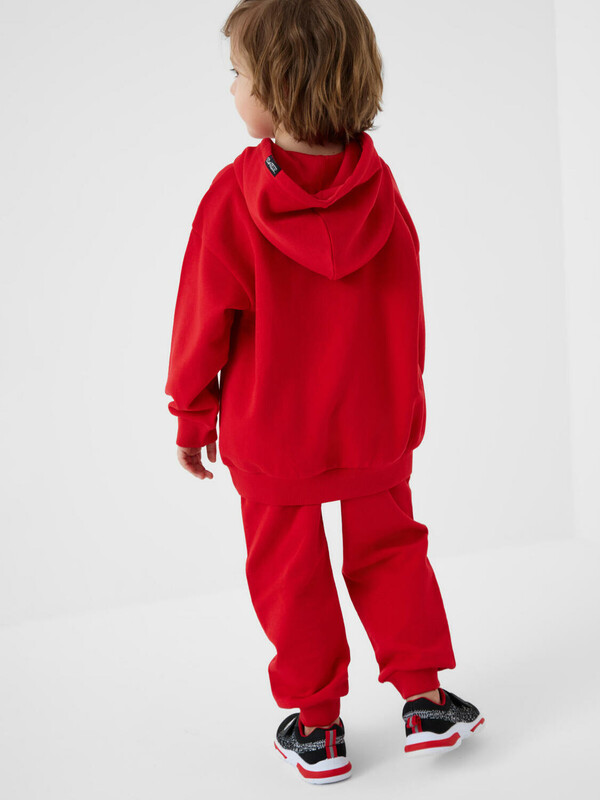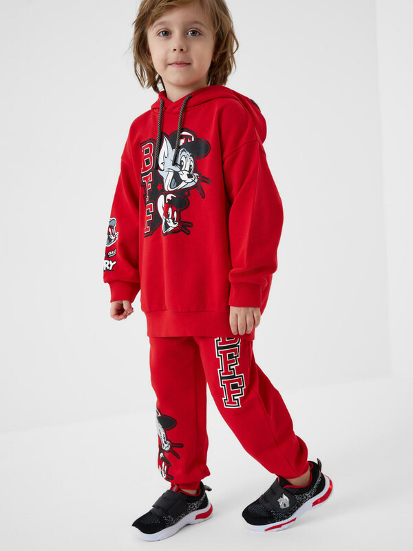 Детский спортивный костюм для мальчика. Комплект выполнен из хлопкового футера и состоит из худи и джогеров на резинке. Толстовка свободного кроя с красочным принтом. Манжеты и пояс выполнены из эластичного риба, благодаря чему изделие хорошо держит форму. Брюки джоггеры — комфортные, с эластичным поясом и шнуром для регулировки посадки. Низ штанин собран на резинку.