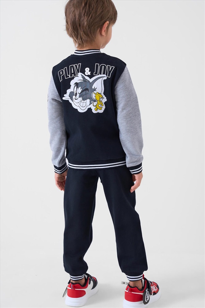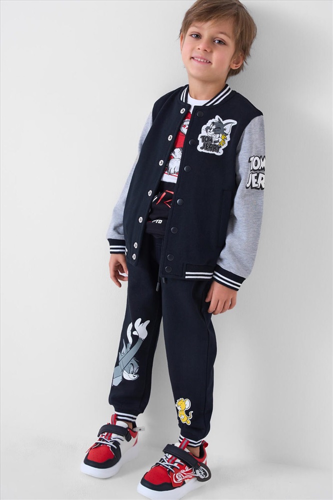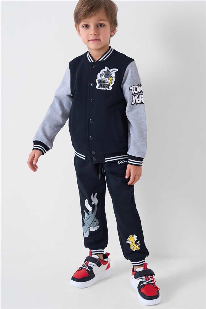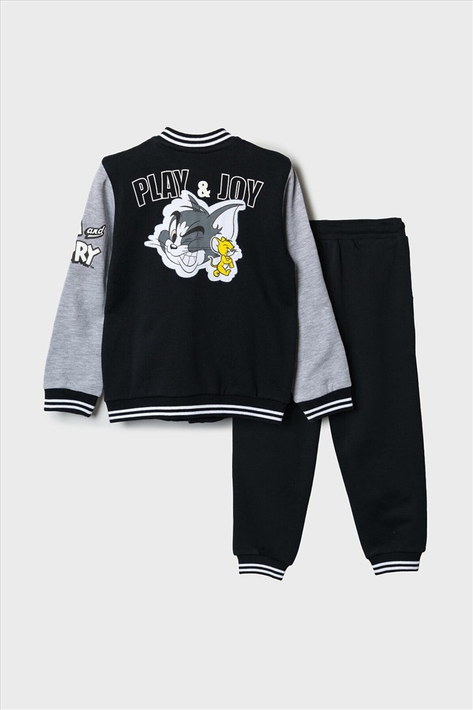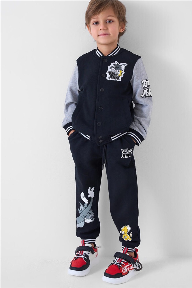 ID товара: 1243219 Состав: 100% хлопок Сезон: Весна/Лето Детский спортивный костюм для мальчика. Комплект выполнен из хлопкового футера и состоит из толстовки на молнии и джогеров на резинке. Толстовка прямого кроя с красочным принтом любимых героев Том и Джерри. Боковые карманы. Манжеты и пояс выполнены из эластичного риба, благодаря чему изделие хорошо держит форму. Брюки джоггеры — комфортные, с эластичным поясом и шнуром для регулировки посадки. Удобные боковые карманы. Низ штанин собран на резинку. Комментарии к товару