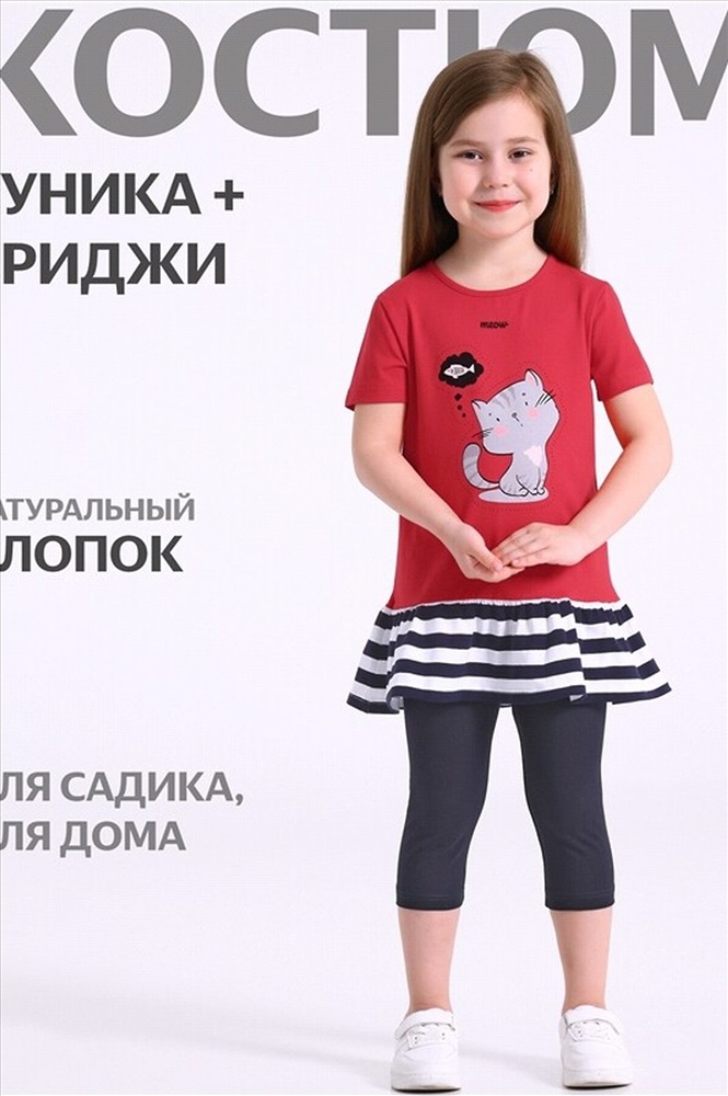 ID товара: 1121215 Акции: -16%, до 01.12.2025 Состав: Хлопок 92%, Лайкра 8% Сезон: Весна/Лето Длина: Средняя Фасон: Повседневный Рукав: Короткий Крой брючин: Облегающий Вырез горловины: Круглый Рисунок: Животные Основная ткань: Хлопок Стиль: Повседневный Страна бренда: Россия Страна производства: Россия Комплект для девочек. Комментарии к товару