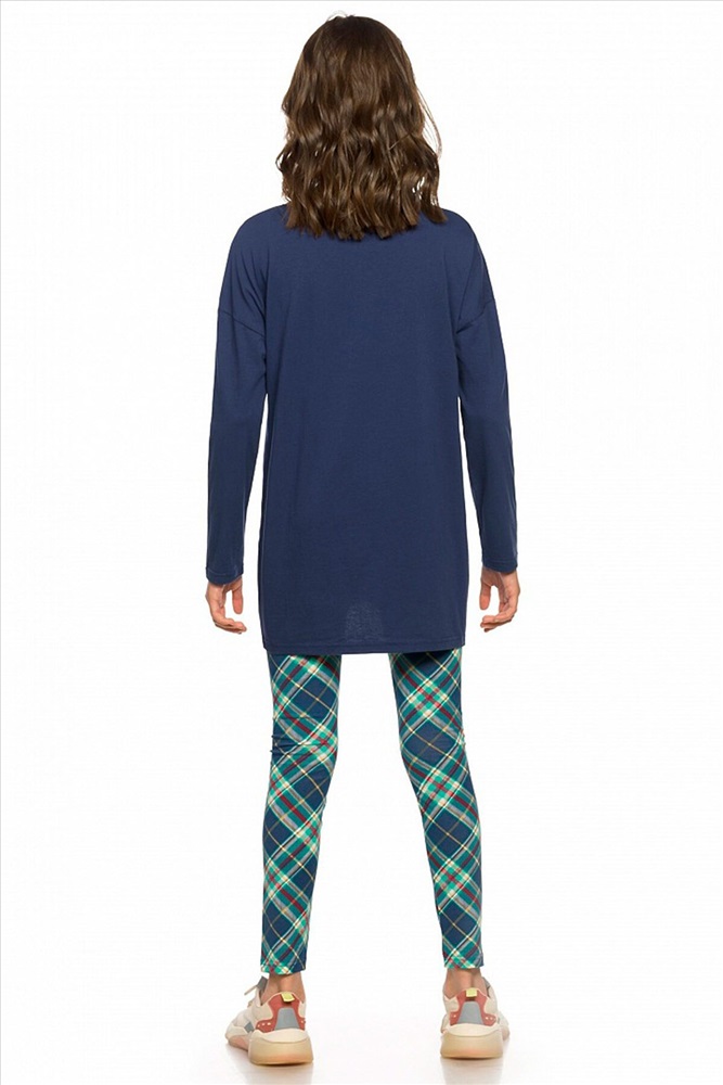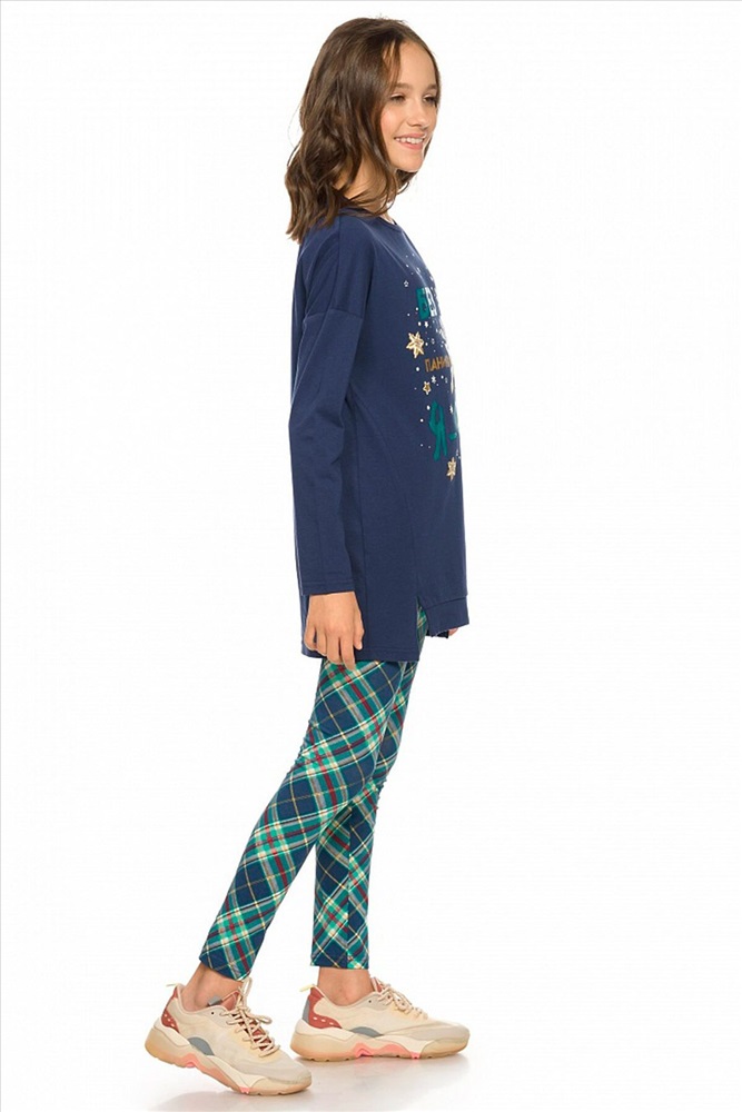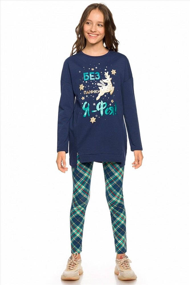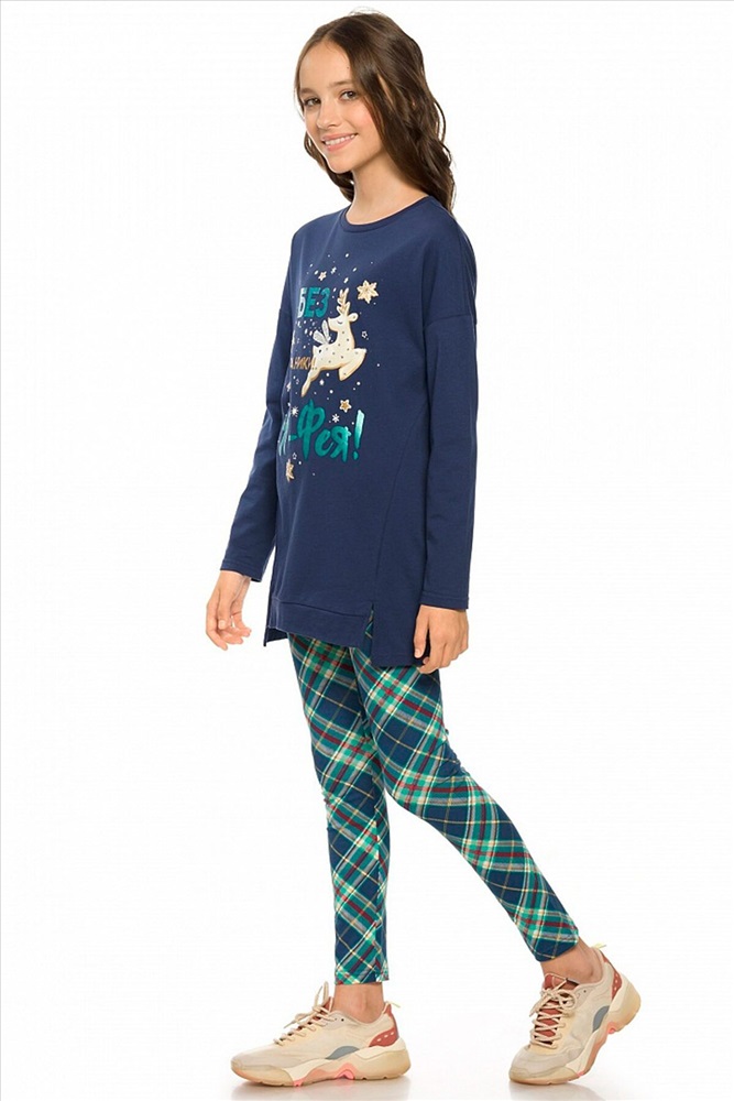 ID товара: 735733 Состав: верх- 100% Хлопок, низ- 93% Хлопок, 7% Эластан Сезон: Осень/Зима Длина: Полная Фасон: Повседневный Рукав: Длинные Вид застежки: Без застежки Крой брючин: Облегающий Рисунок: Клетка Декоративные элементы: Печатный принт Основная ткань: Хлопок Стиль: Повседневный Страна бренда: Россия Страна производства: Китай Комплект для девочек. Туника О образного силуэта с перепадом длин между передом и спинкой, спущенное плечо, боковые швы переведены на перед, оканчиваются небольшими разрезами. Принт в виде пряничного оленя, с золотом, бирюзовым глиттером и металликом, стразами. Классические лосины в All over принт клетку. Комментарии к товару