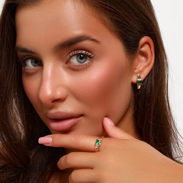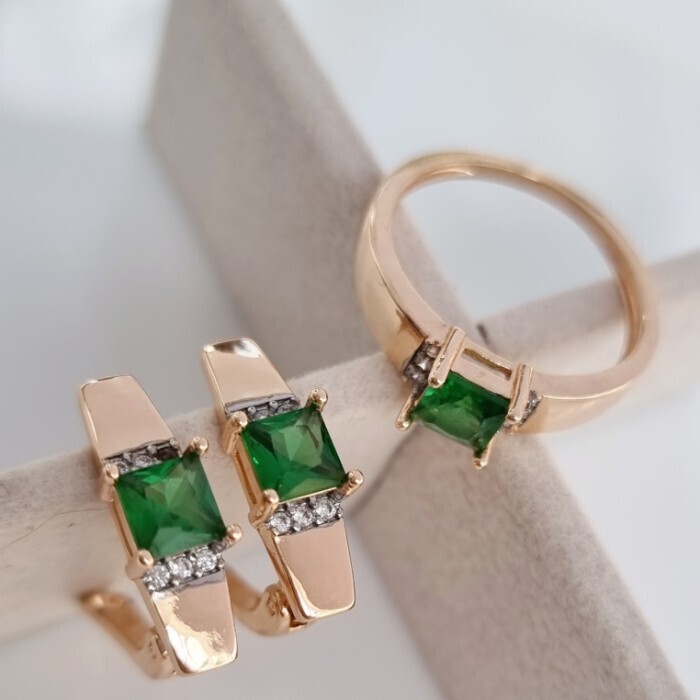 Комплект ювелирная бижутерия коллекция "Дубай" серьги и кольцо 17 р, покрытие: позолота, вставка: фианиты, цвет: зеленый и прозрачный, арт.217.299-17