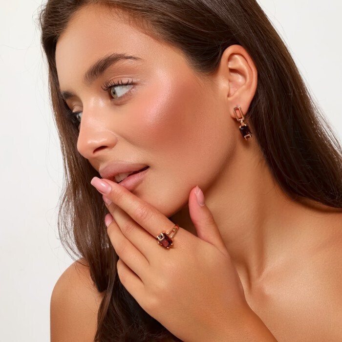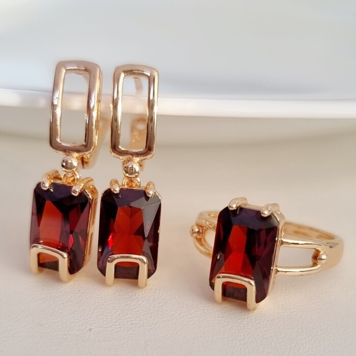 Комплект ювелирная бижутерия коллекция "Дубай" серьги и кольцо 18 р, покрытие: позолота, вставка: фианиты, цвет: красный, арт.217.309-18