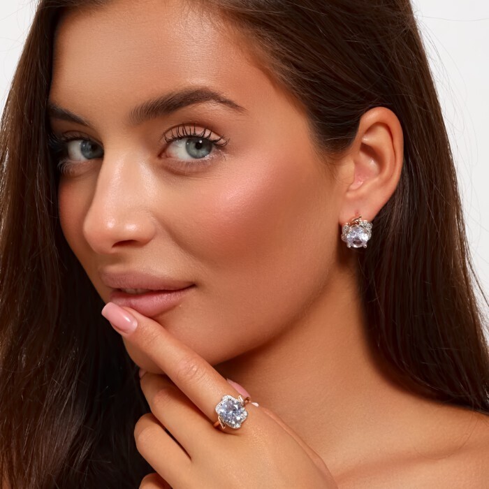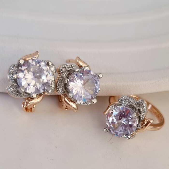 Комплект ювелирная бижутерия коллекция "Дубай" серьги и кольцо 18 р, покрытие: позолота, вставка: фианиты, цвет: прозрачный, арт.313.122-18