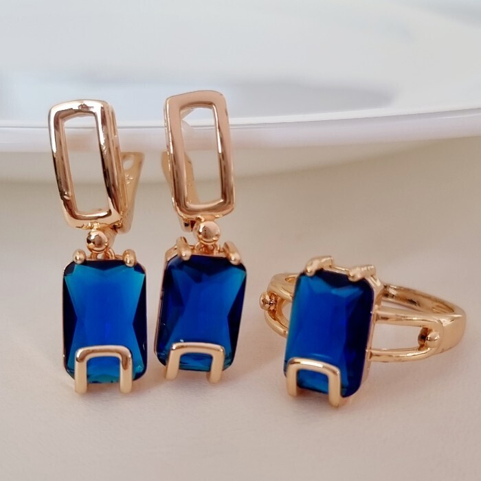 Комплект ювелирная бижутерия коллекция "Дубай" серьги и кольцо 19 р, покрытие: позолота, вставка: фианиты, цвет: синий, арт.217.307-19