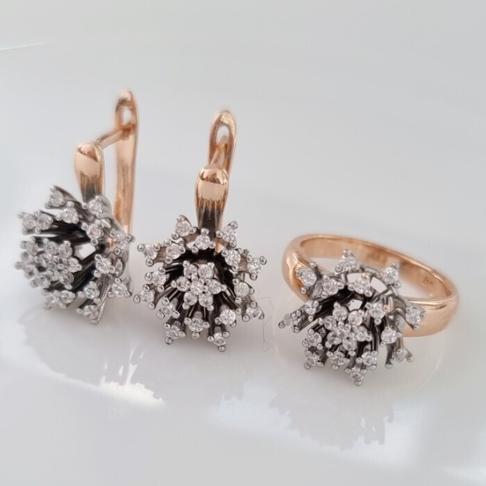 Комплект ювелирная бижутерия коллекция "Дубай" серьги и кольцо 19 р, покрытие: позолота, вставка: фианиты, цвет: прозрачный, арт.313.114-19