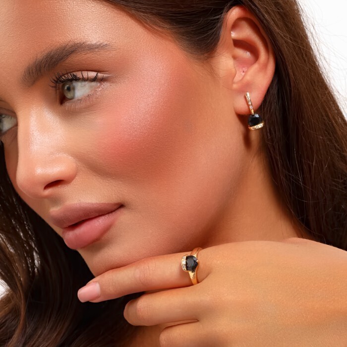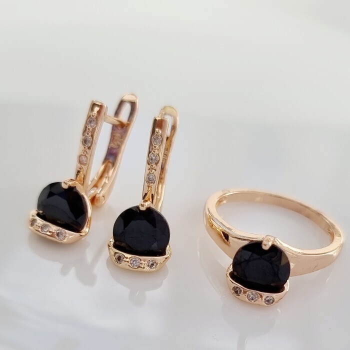 Комплект ювелирная бижутерия коллекция "Дубай" серьги и кольцо 20 р, покрытие: позолота, вставка: фианиты, цвет: черный и прозрачный, арт.217.313-20
