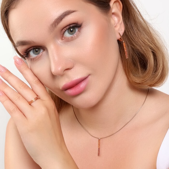 Размер серьги: 4,5*0,4 см. Замок: английский. Размер кулона: 3*0,4 см. Вес комплекта: 7 гр. Внимание! Цепочка в комплект не входит.