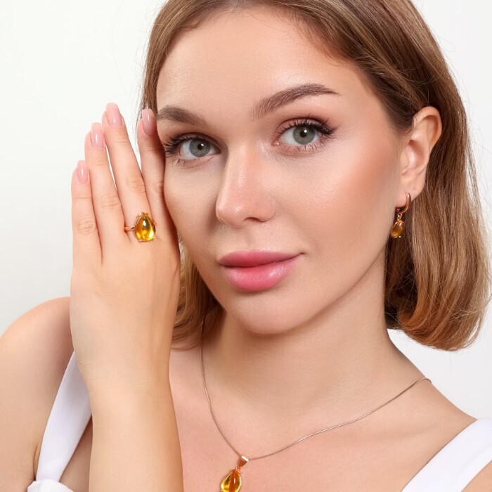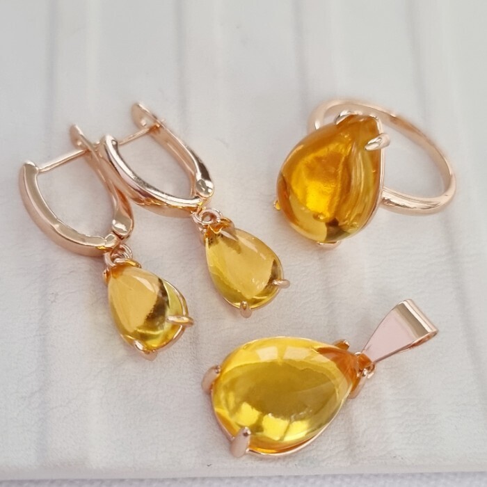 Комплект ювелирная бижутерия коллекция "Дубай" серьги, кулон и кольцо 17 р, покрытие: позолота, вставка: пластик, цвет: желтый, арт.215.421-17
