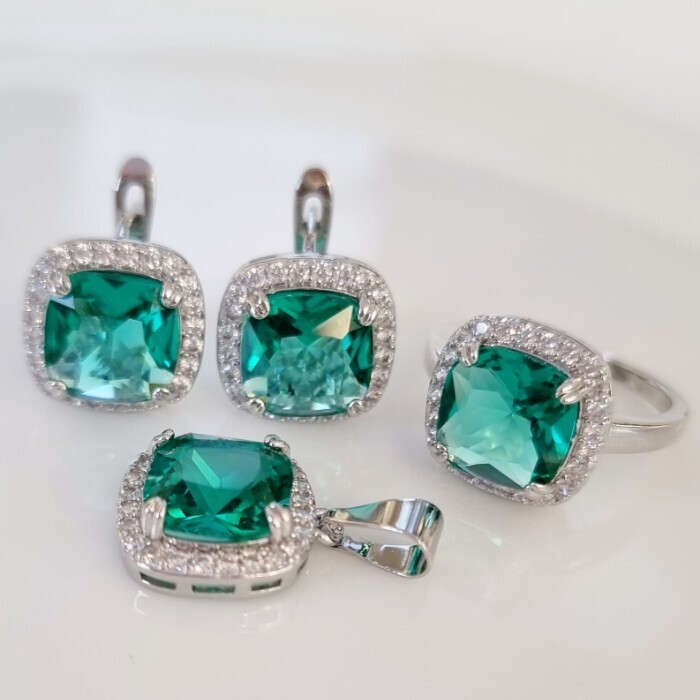 Размер серьги: 1,4*1,4 см. Замок: английский. Размер кулона: 2,2*1,4 см. Вес комплекта: 12 гр. Внимание! Цепочка в комплект не входит
