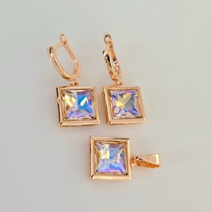 Комплект ювелирной бижутерии Дубайское золото: серьги и кулон с крупным камнем, покрытие позолота, вставка: фианит, цвет: хамелеон, арт.314.990