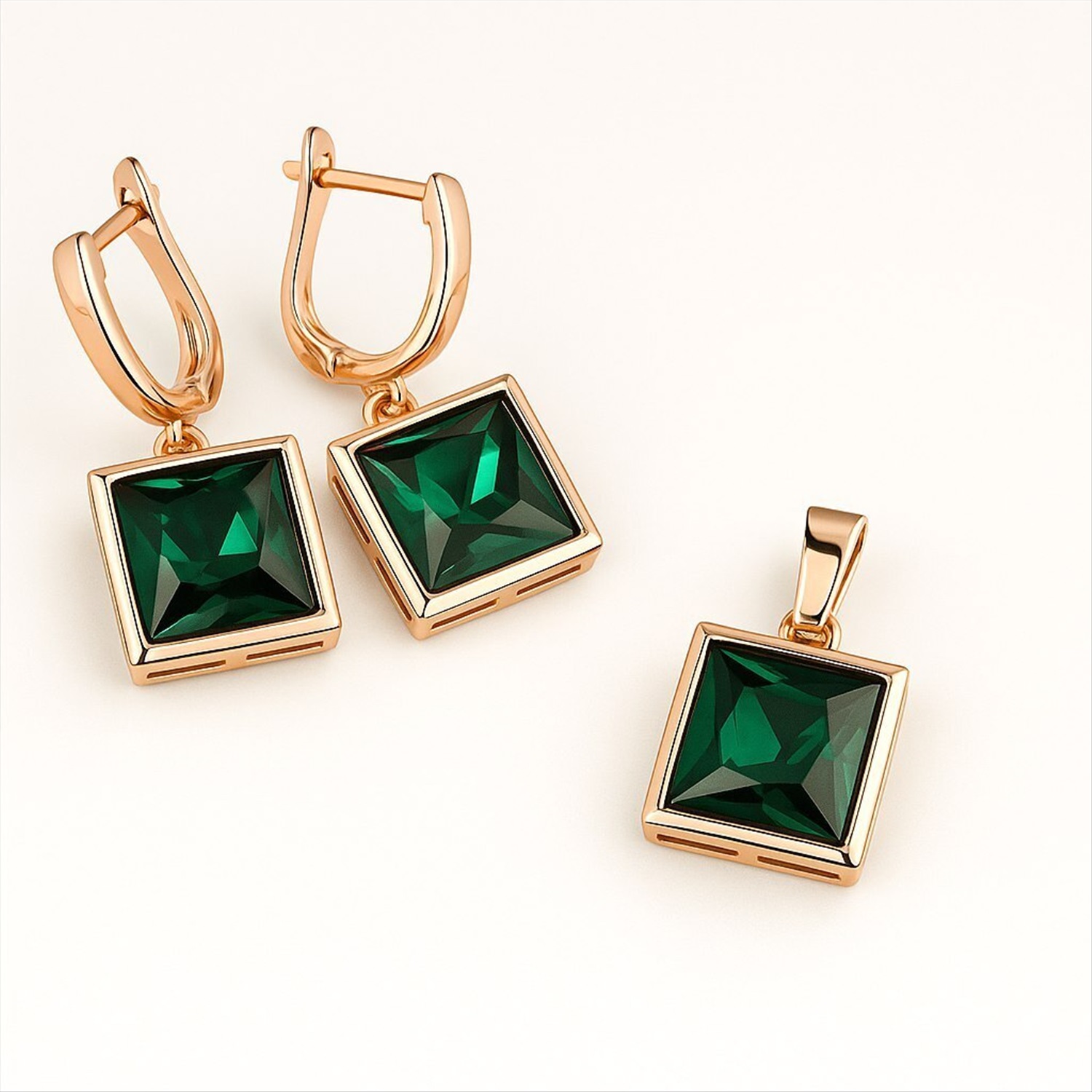 Комплект ювелирной бижутерии Дубайское золото: серьги и кулон с крупным камнем, покрытие позолота, вставка: фианит, цвет: изумрудный, арт.314.994