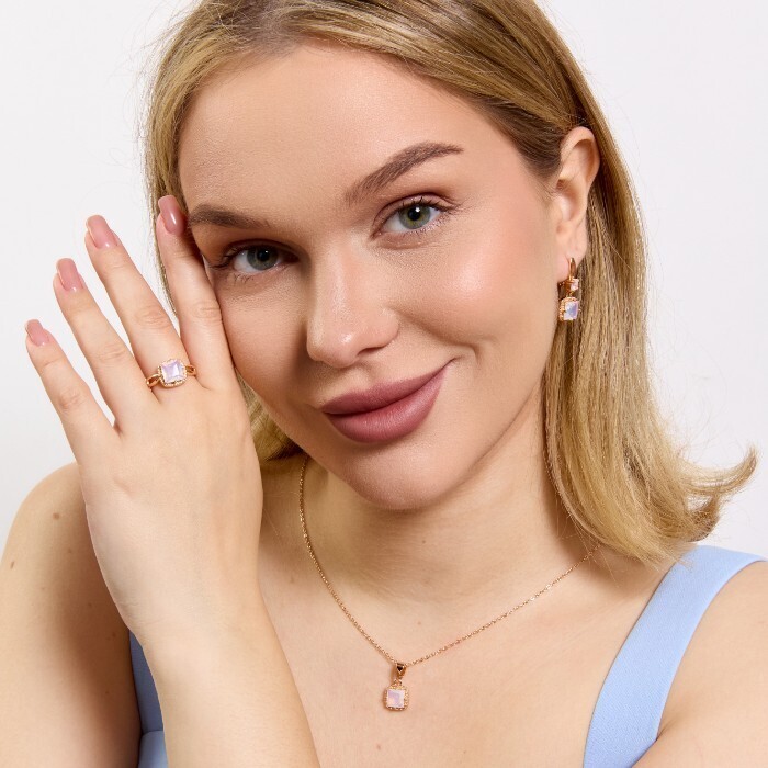 Комплект ювелирной бижутерии Дубайское золото: серьги, кулон и кольцо 20 р с крупным камнем, покрытие позолота, вставка: фианит, цвет: прозрачный, арт.314.967-20